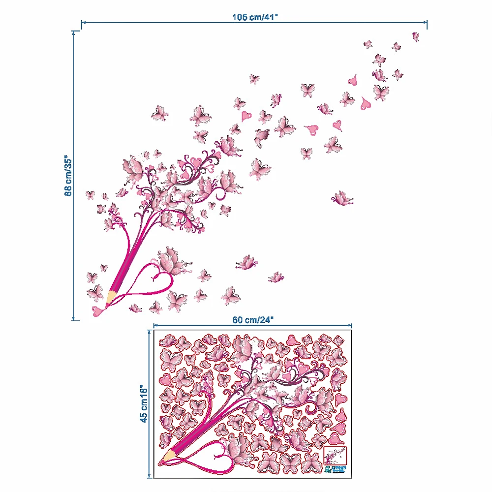 Настенные Стикеры-карандаши из ПВХ с цветами и бабочками