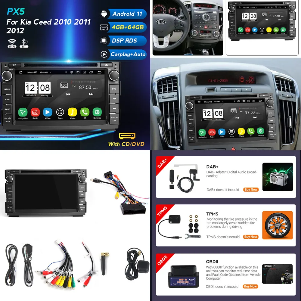 Автомобильная Мультимедийная система Android, 2 Din, Dvd-плеер, GPS, Авторадио, аудио для Kia Ceed 2010, 2011, 2012, 2 Din, автомобильное радио, стерео, DSP, IPS, BT