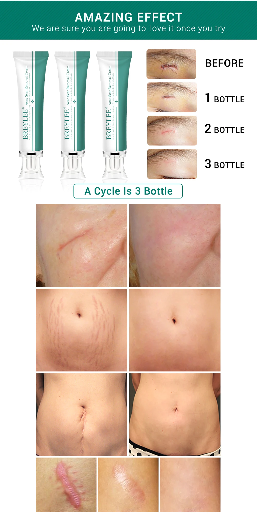 Крем BREYLEE для шрамов, удаление растяжек для шрамов, удаление угрей, старые и новые шрамы, лечение прыщей, отбеливающий увлажняющий крем, уход за кожей
