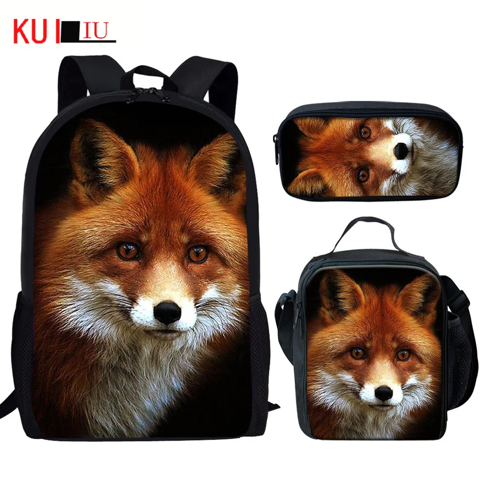 Детский рюкзак с принтом лисы KUILIU, 3 шт.комплект, школьные ранцы...