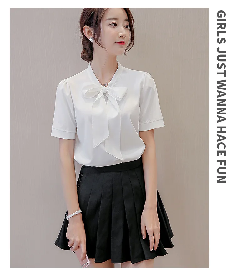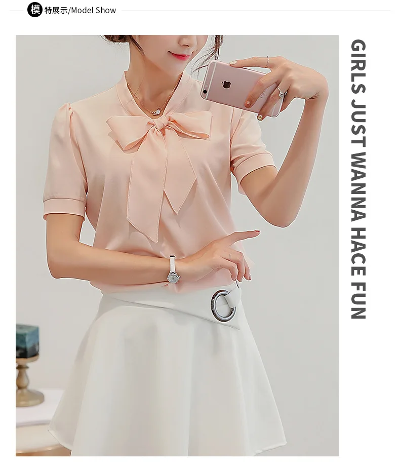 Женская шифоновая блузка с бантом, однотонная блузка с коротким рук...