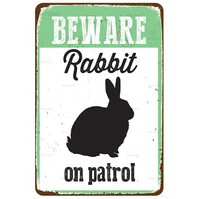 Винтажный металлический жестяной знак Остерегайтесь Предупреждение текст кролик животные железная пластина картины постер двор знак бар Сад Ретро Декор