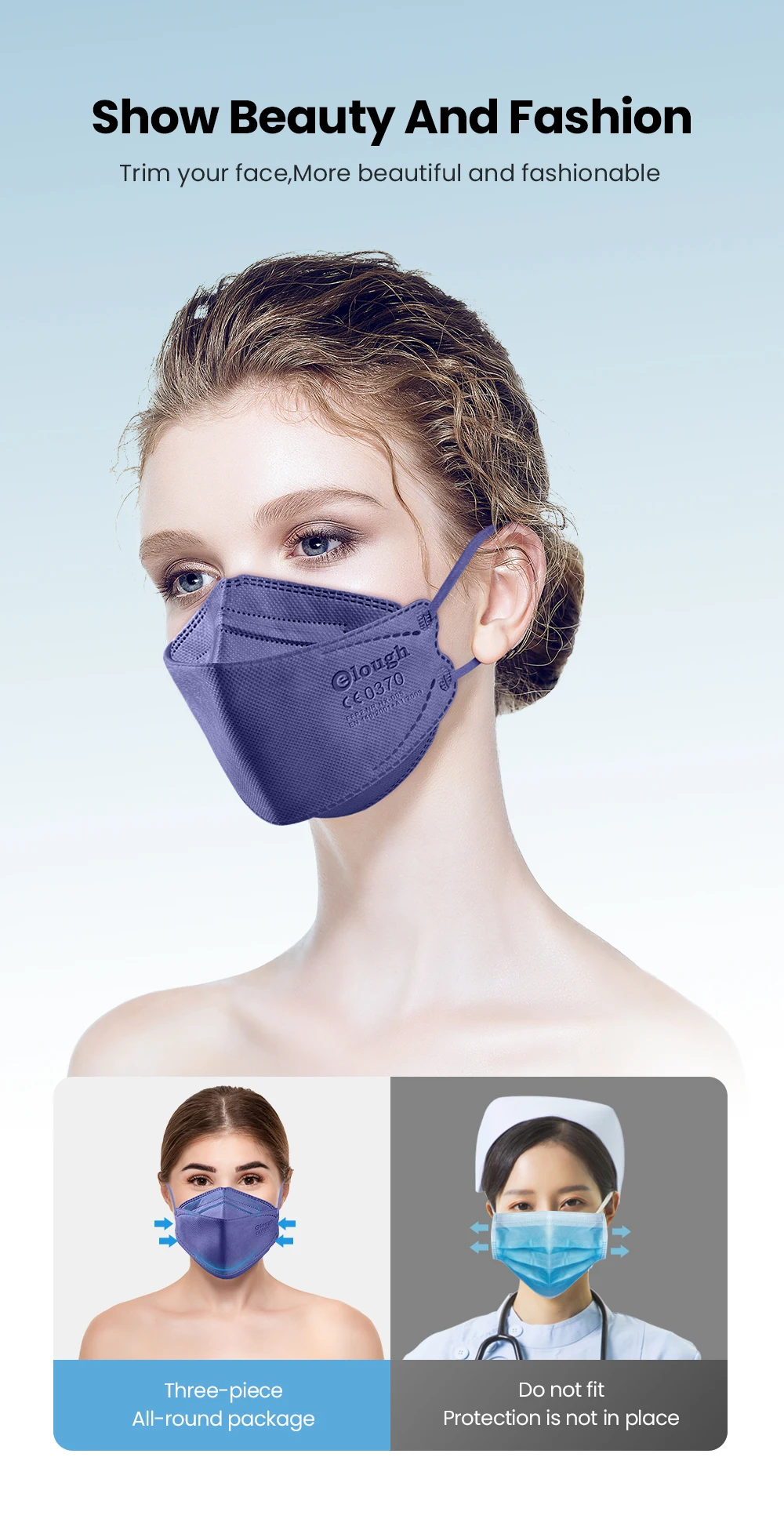 ①Comfortable в носке.②Хороший эффект фильтрации, особенно для очень мелких частиц и пыли.