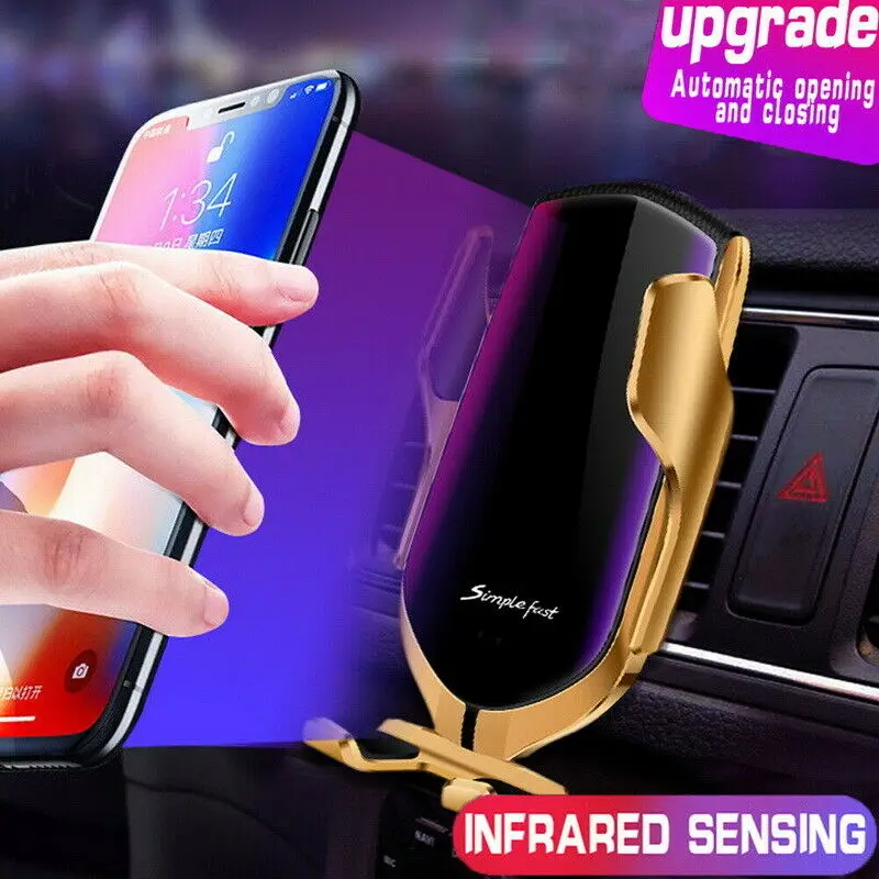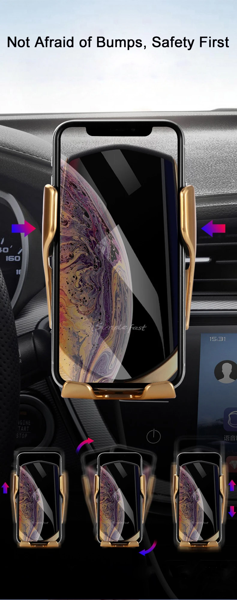 R1 автоматическое зажимное 10 Вт Беспроводное зарядное устройство Автомобильный держатель для телефона умный ИК-датчик крепление на вентиляционное отверстие мобильный телефон подставка держатель
