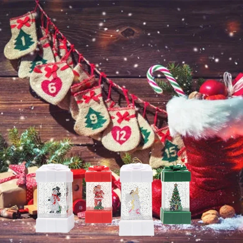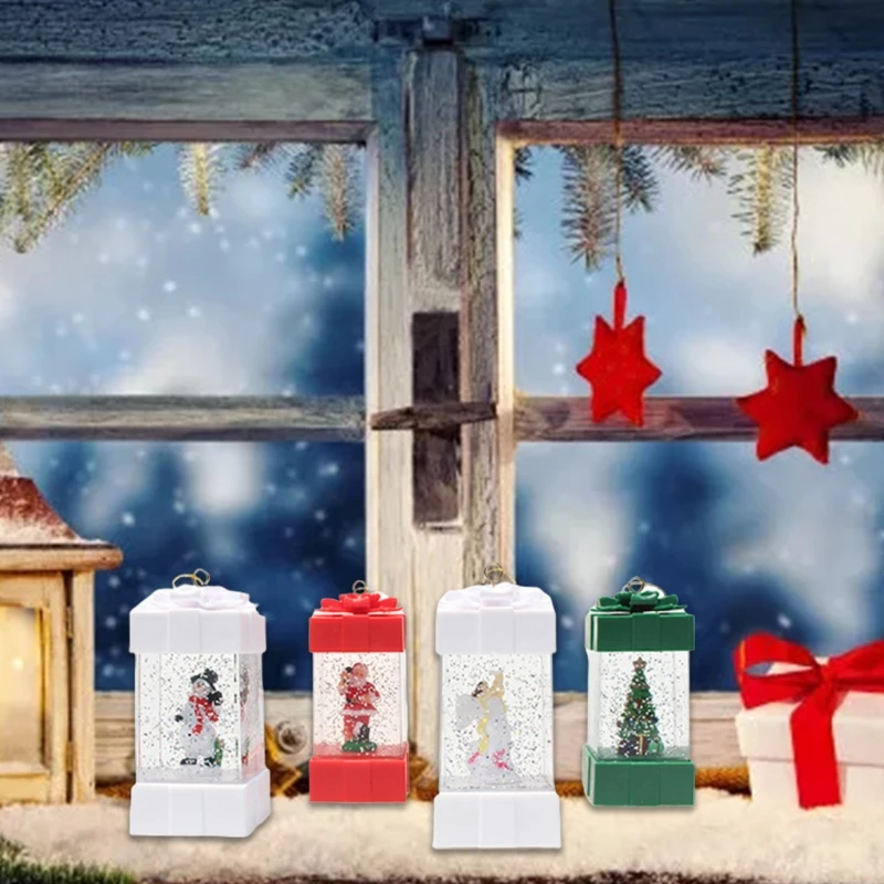 QXNA Рождественская светящаяся Подарочная коробка снежный глобус светодиодный фонарь Снеговик Санта сцена водная лампа