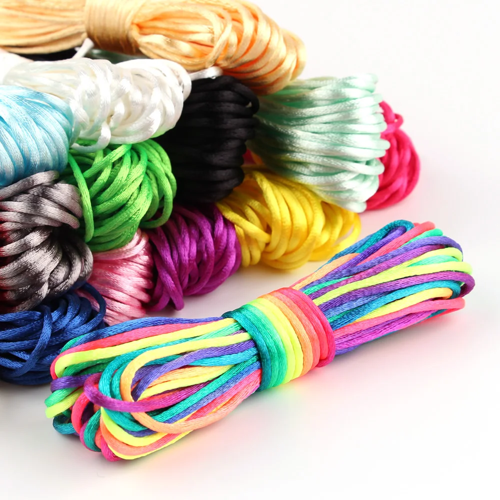 TYRY.HU многоцветный 10 метровый атласный нейлоновый шнур сплошной канат для изготовления ювелирных изделий Бисероплетение хлопковый шнур для ребенка 2 мм Плетеный шелковый шнур
