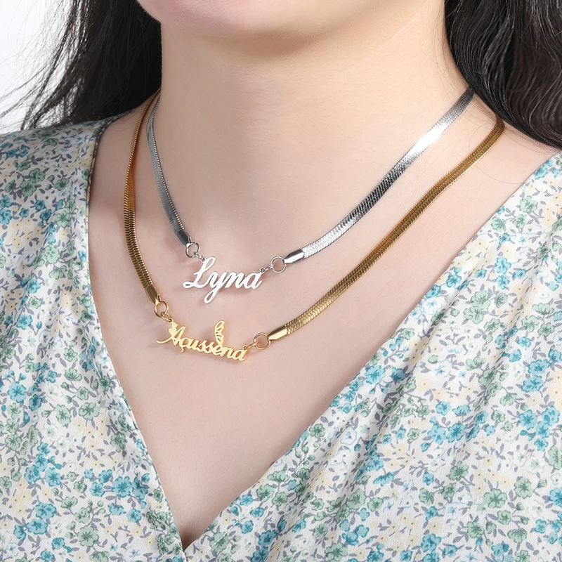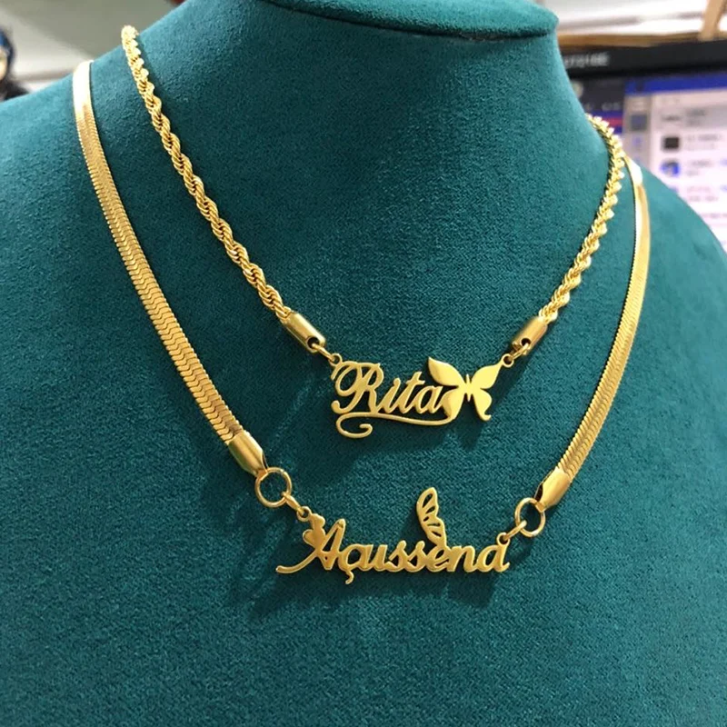 Ожерелья с именем для женщин, подвеска из нержавеющей стали золотого цвета в форме сердца, бабочки, табличка с именем, змеиная цепь, твист-цепь, подарок другу