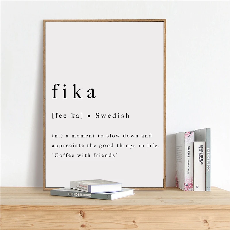 Fika шведская цитата, художественный плакат, Швеция, современное простое настенное искусство, холст, живопись, буквы, черные и белые фотографии