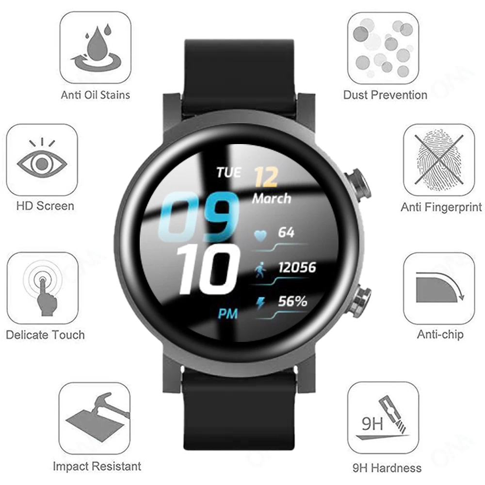 Специальное покрытие PMMA с твердостью 9H и сопротивлением маслу обеспечивает 100% точность касания. Устойчивость к царапинам предотвращает повреждение часов и сохраняет экран в целости. Идеальная функция точности касания и скольжения позволяет использовать часы так же эффективно, как и непокрытый экран.