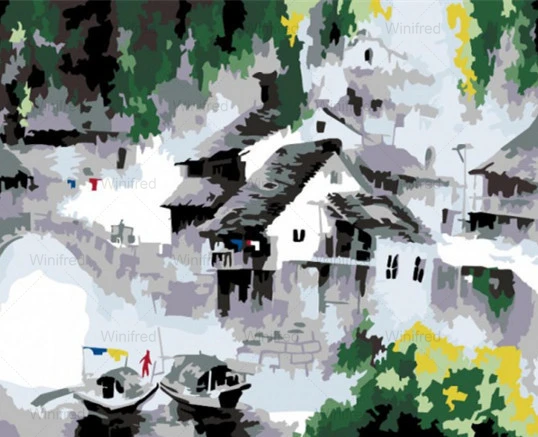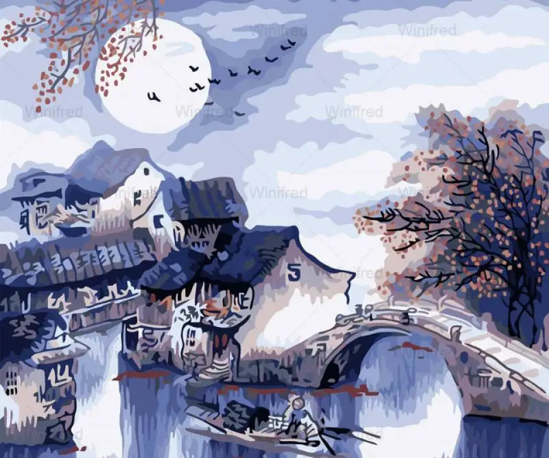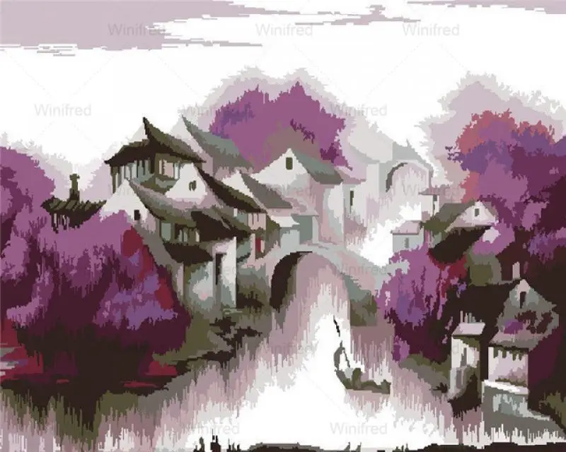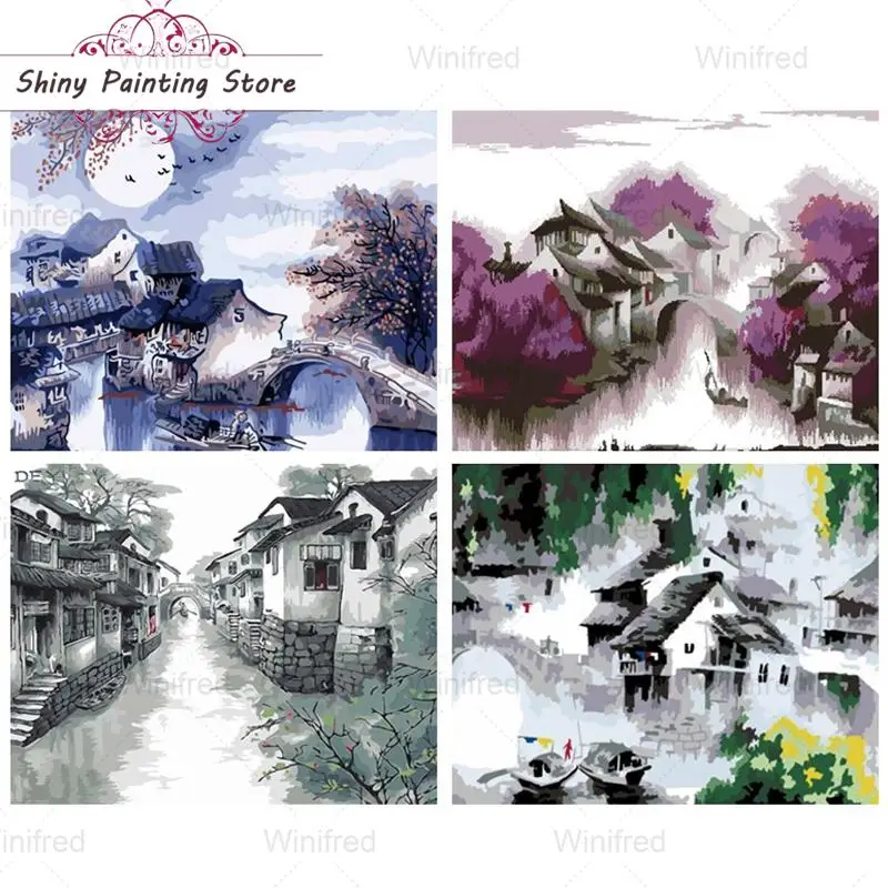 Алмазная живопись в китайском стиле Цзяннань, городской пейзаж, чернильная живопись, алмазная вышивка, вышивка крестиком, домашний декор, подарок