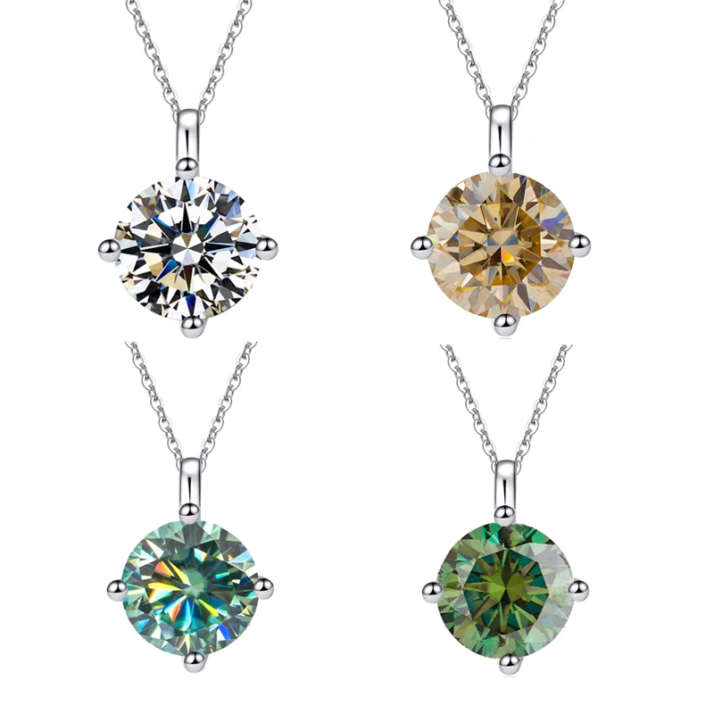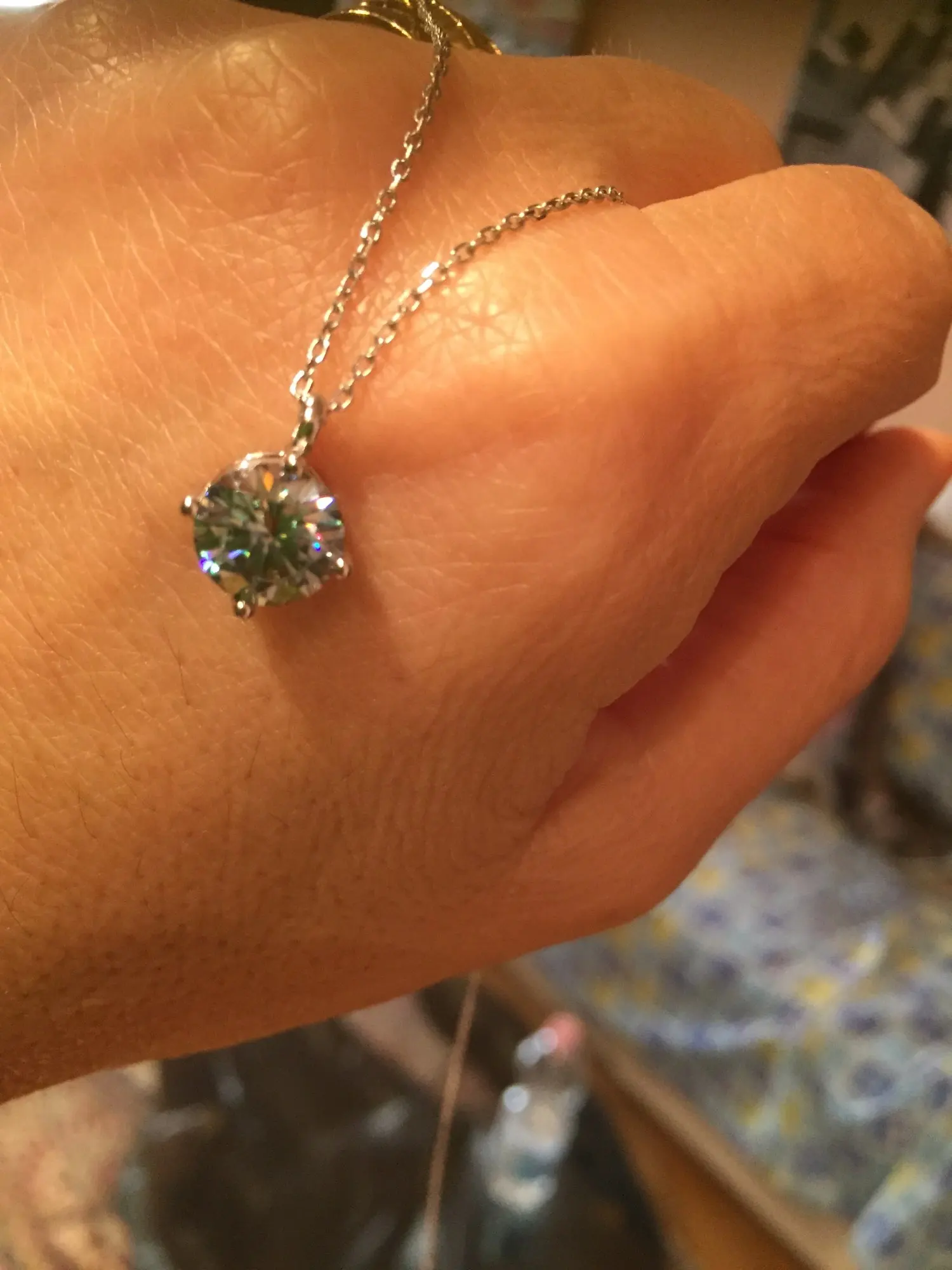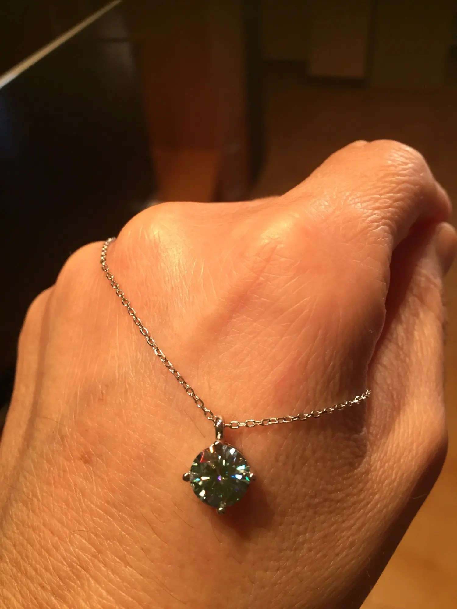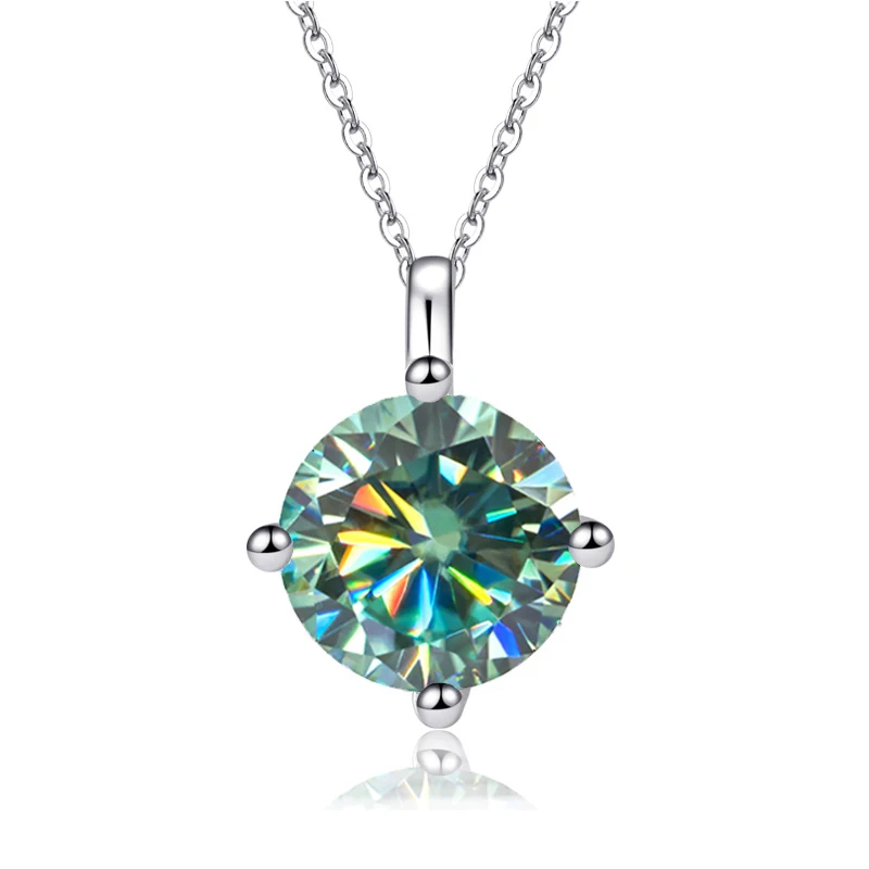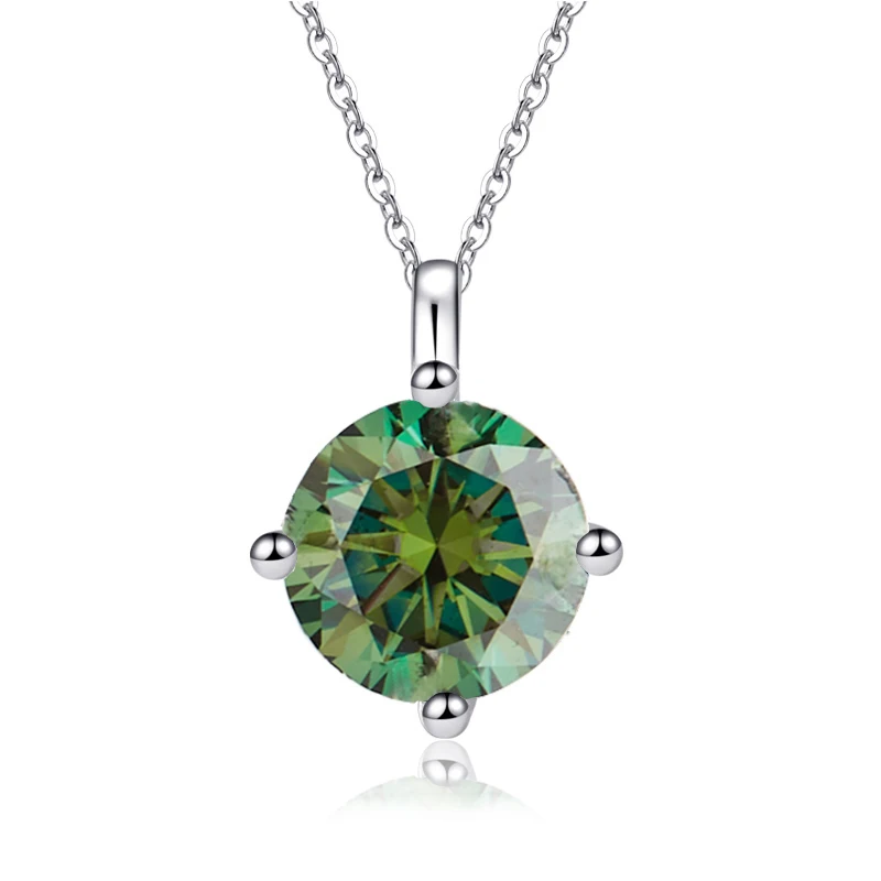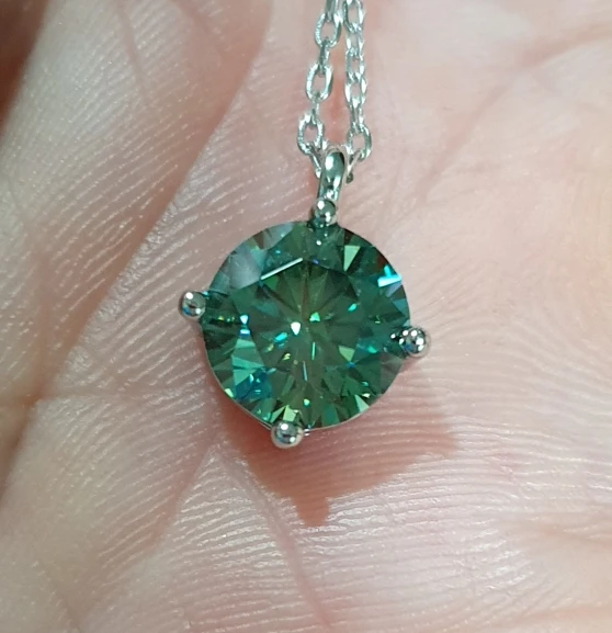 *** Примечание: каждая партия красочного моиссанита будет иметь небольшую разницу в цвете. Длина цепочки 45 см, 0.5ct Муассанит составляет 5 мм, 1ct Муассанит является 6,5 мм, 2ct Муассанит составляет 8 мм. 3Ct moissanite 9 мм.Поставляется с сертификатом gra.