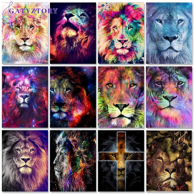 Картина по номерам животных GATYZTORY, набор для рисования на холсте, ручная роспись, подарок, DIY картина маслом по номерам, изображения льва, домашний декор, искусство