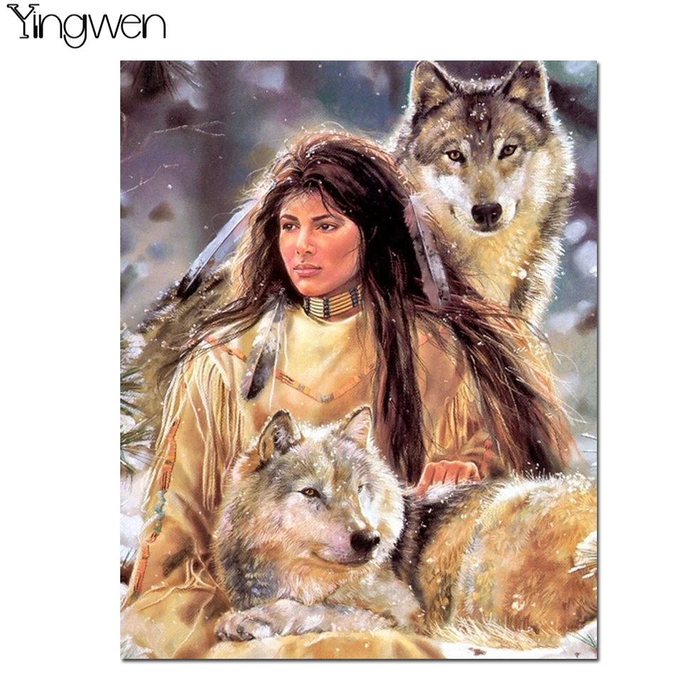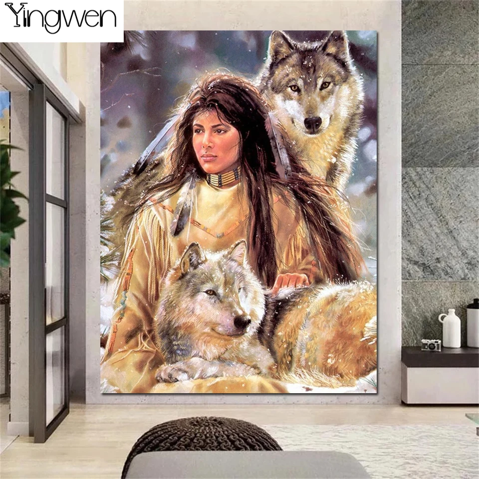 5D сделай сам, полностью алмазная живопись, индейская женщина, наборы для вышивки крестиком, картина волка, мозаика, вышивка бисером, настенное искусство, домашний декор