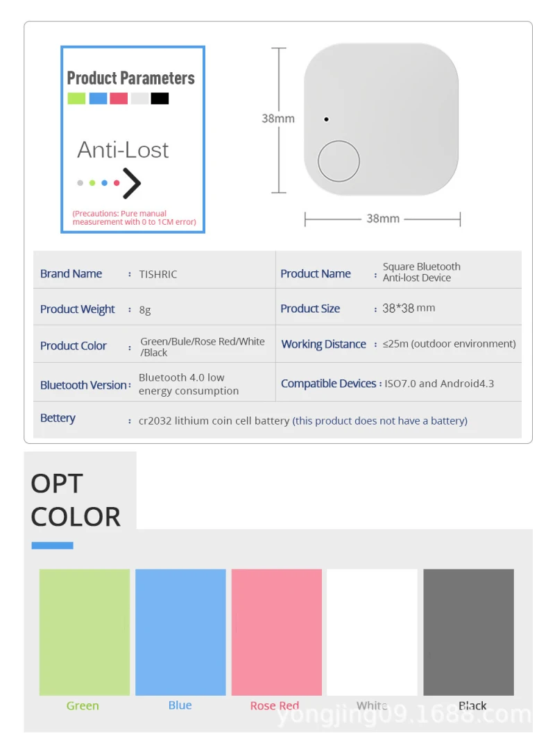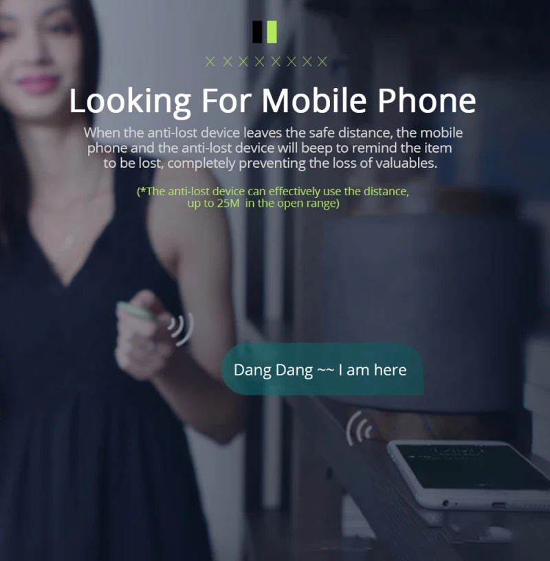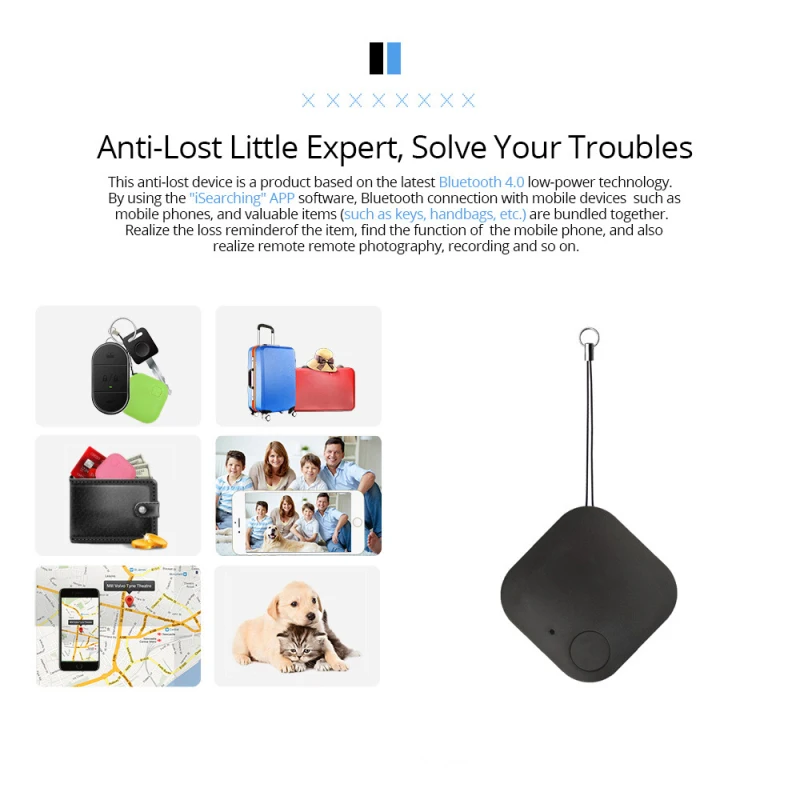 Это устройство с защитой от потери является продуктом на основе новейшей технологии Bluetooth 4,0 с низким энергопотреблением. С помощью программного обеспечения приложения и bluetooth-совместимого соединения с мобильными устройствами, такими как мобильные телефоны, изделие может быть легко потеряно пользователями и ценными элементами (например, ключом, сумочкой и т. д.) для реализации функции предотвращения потери товаров и поиска мобильных телефонов. Он также может осуществлять удаленную фотосъемку и другие функции (такие как вечерние фотографии, самостоятельная съемка и т. д.).