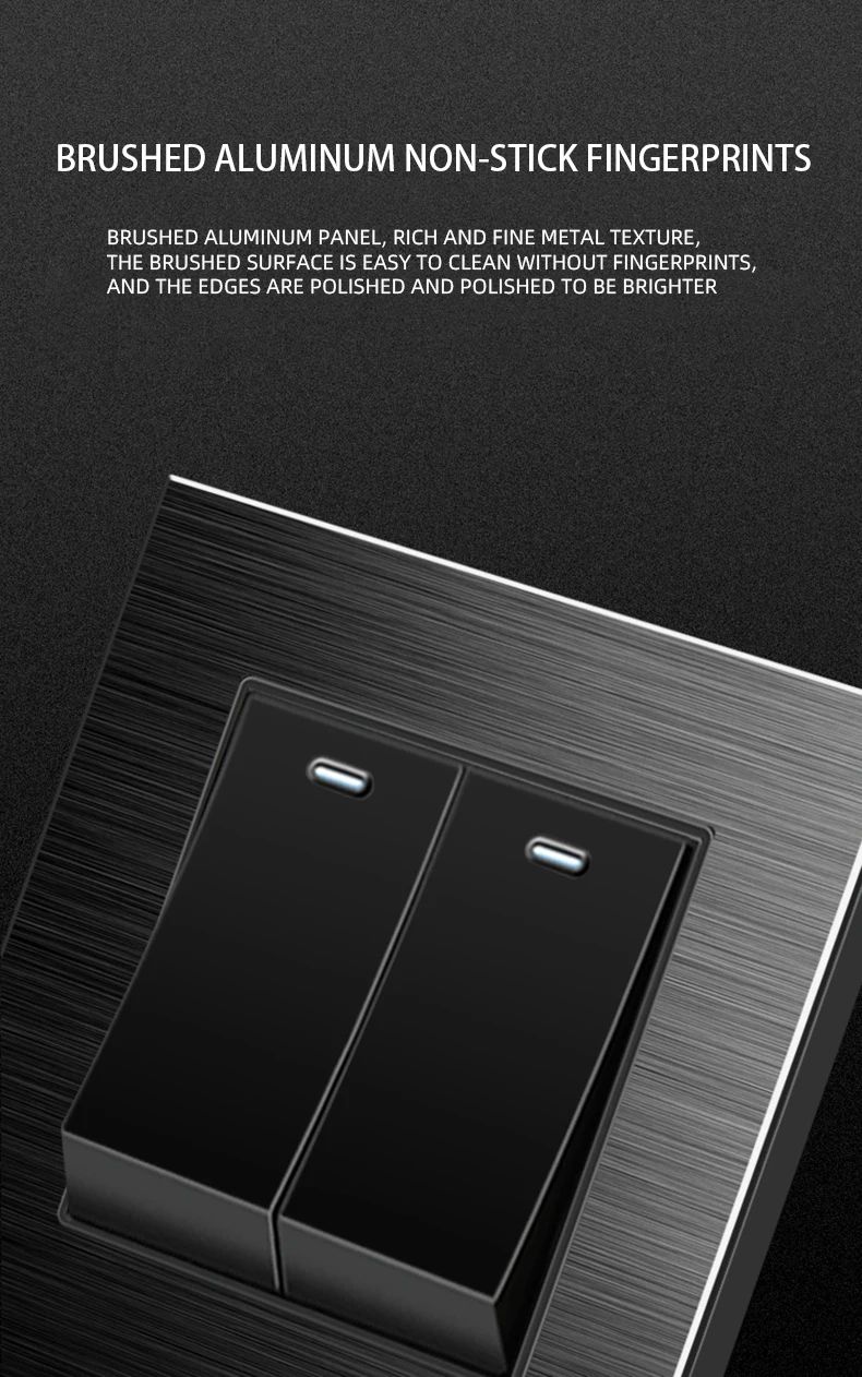 Электрическая розетка с двумя USB-портами и алюминиевой панелью