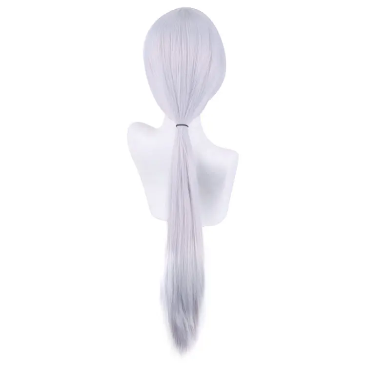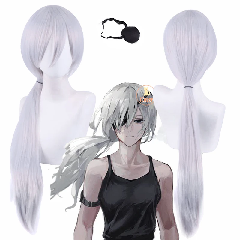 Парик для косплея аниме бензопила Quanxi, серебристо-белый, с нашивкой для глаз, Длинный Конский хвост, термостойкий, искусственный парик для Хэллоуина