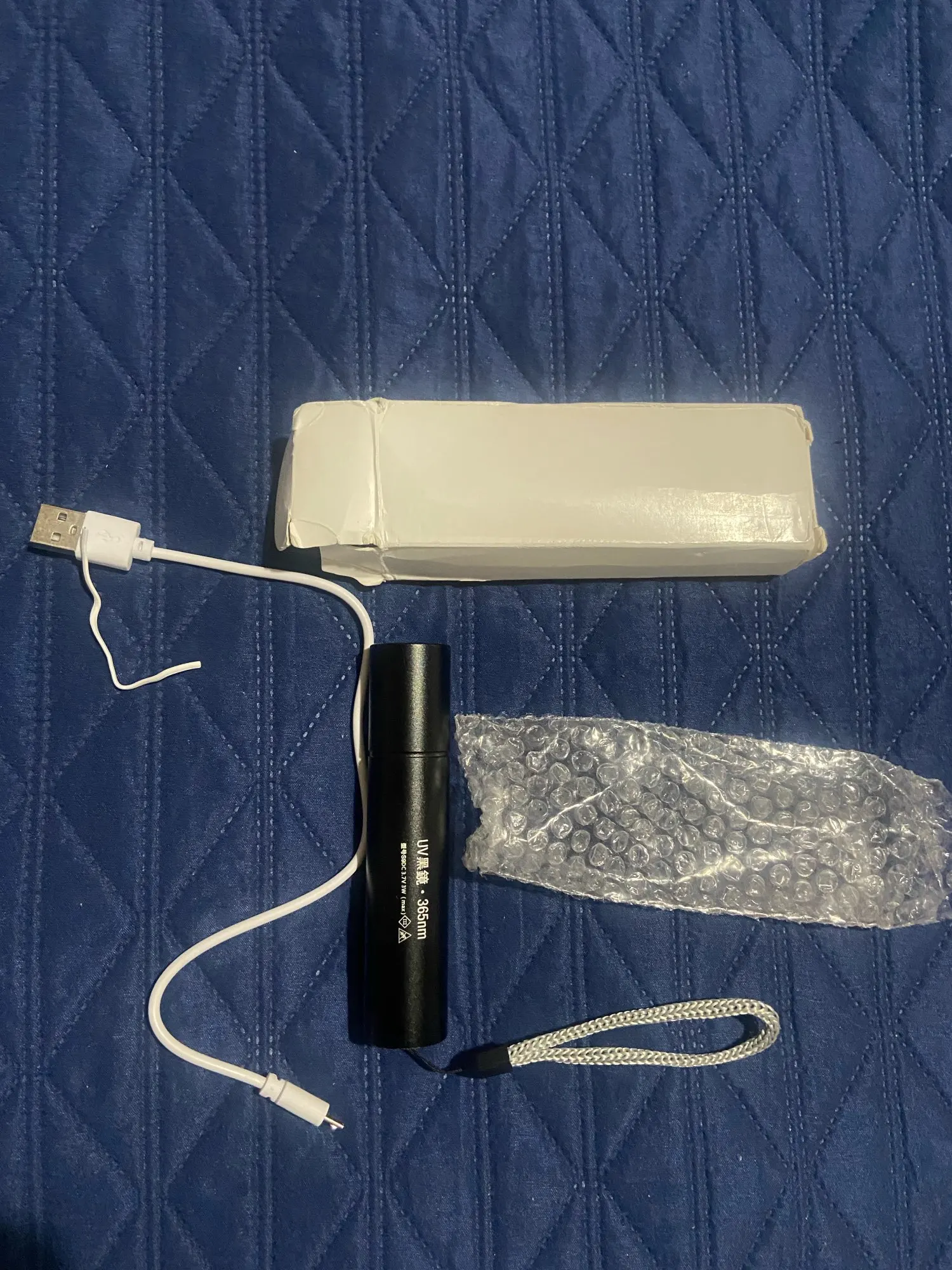 товар прибыл за 40 дней,но это из за новогодних праздников я думаю,товар соответствует описанию: уф фонарь с черным фильтром,подходит для проверки драгоценных камней.Продавец очень быстро отправил товар,рекомендую.