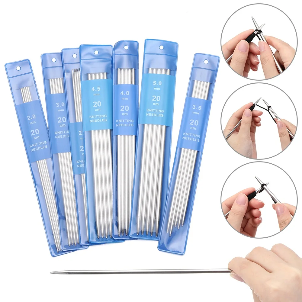 5 шт./компл. 20 см прямые спицы из нержавеющей стали металлические крючки для вязания крючком Размер 2-5 мм DIY Набор вязальных инструментов