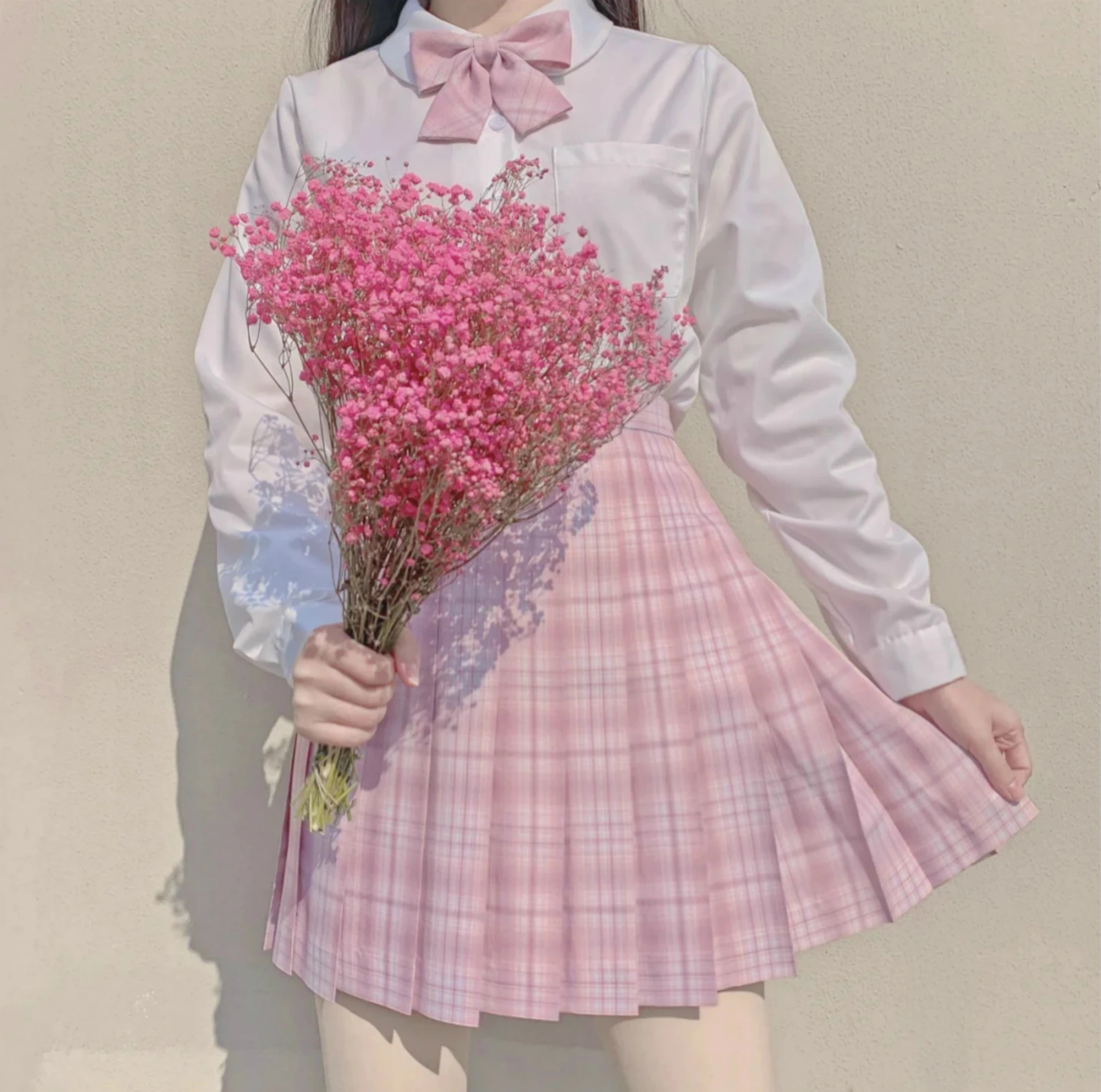 Японская школьная форма с высокой талией, школьная форма для девочек, плиссированная юбка, трапециевидная клетчатая юбка, пикантная форма JK для женщин, полный комплект
