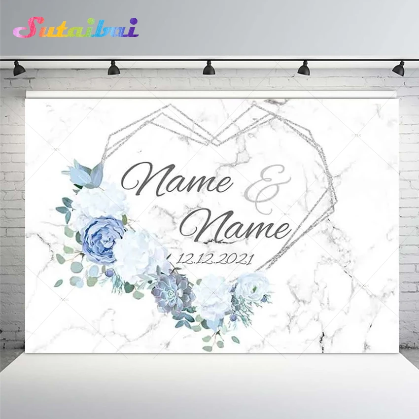 Красивый фон с белыми и синими цветами для свадебной фотосъемки жен...
