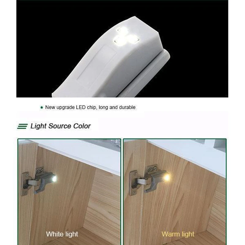 Наш шарнирный светильник имеет 3 шт. светодиодный бисер, и Он управляется батареей 12A 23V, обладая свойствами высокой яркости и более низкого энергопотребления, это действительно практичный и доступный светильник для шкафа