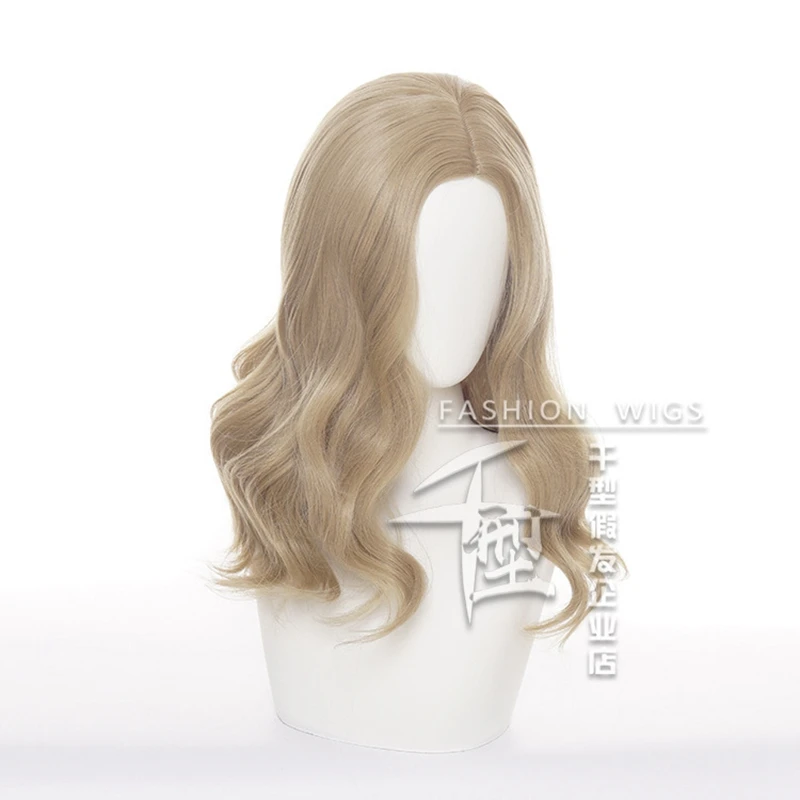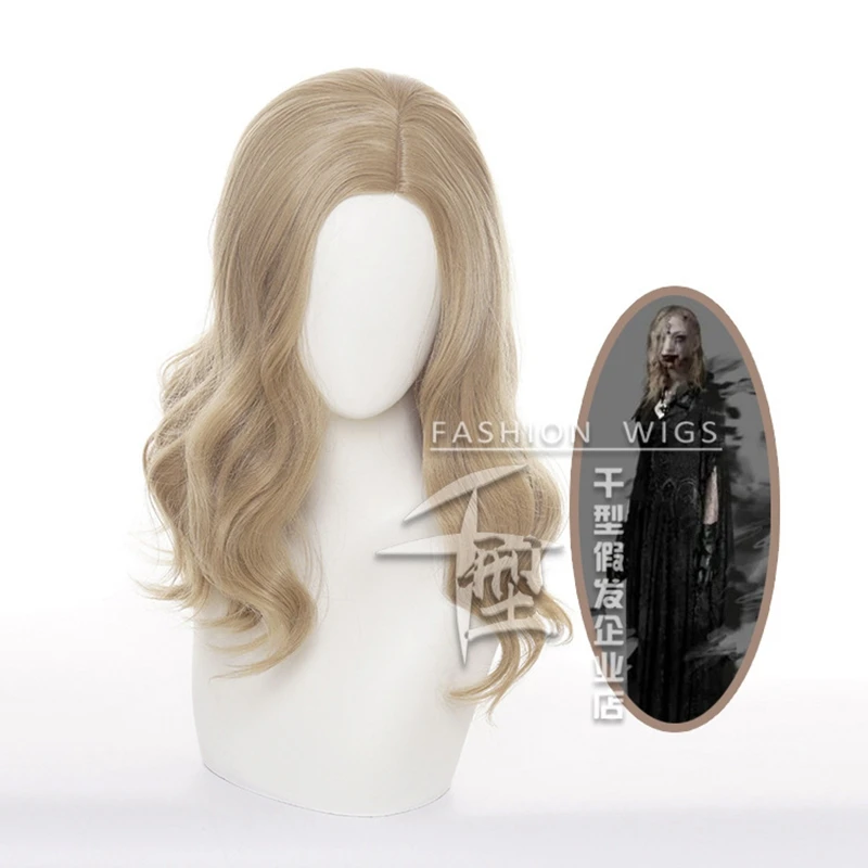 Парик Bela Lady Dimitrescu, 45 см, коричневый, желтый, средней длины, вьющиеся волосы, для Хэллоуина, карнавала, вечеринки, женские длинные парики