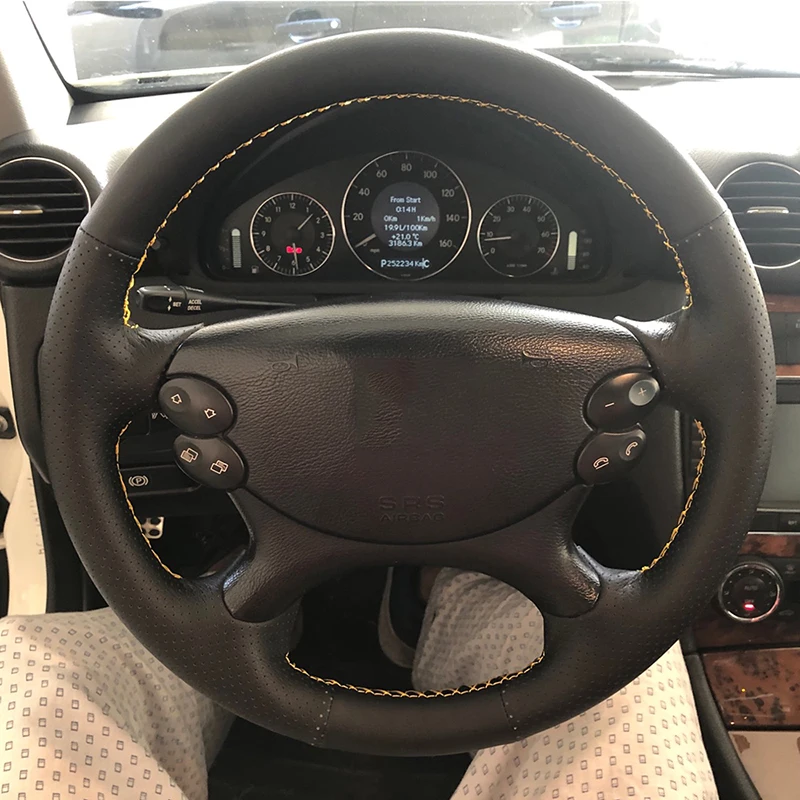Кожаная оплетка для руля для Benz E-Class W211, E230, E350, E280, CLS-Class чехол рулевого колеса автомобиля, 350 AMG, SL, CLK