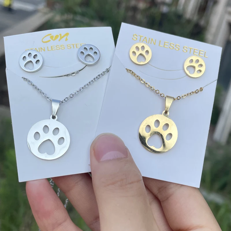 Комплект из колье и серёг, с мультяшным слоном, бабочкой, котом, лапой