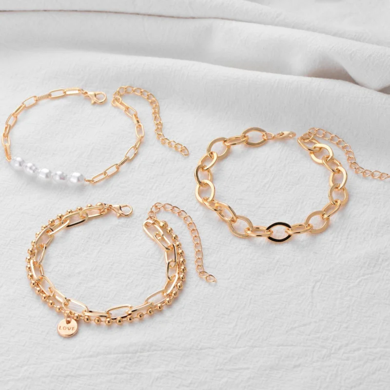 Комплект женских браслетов-цепочек из кубинской цепи в стиле панк