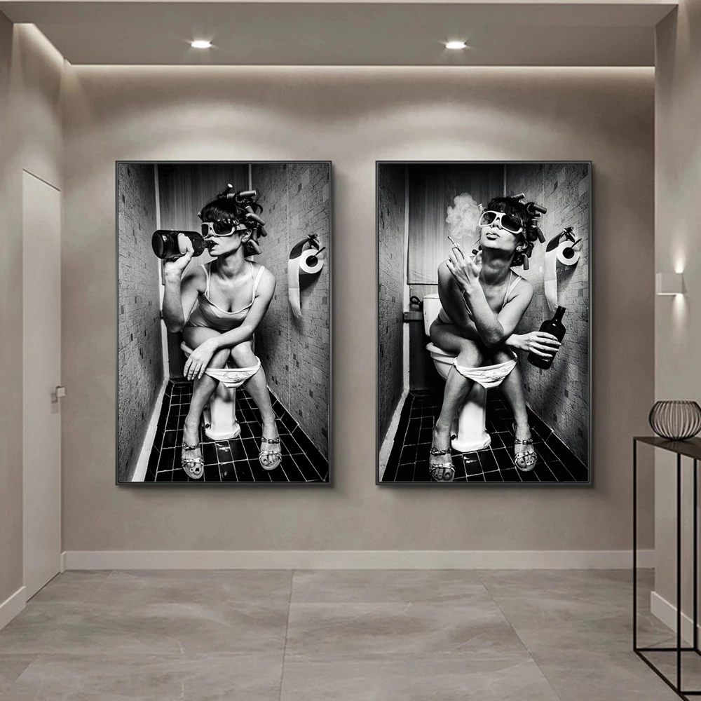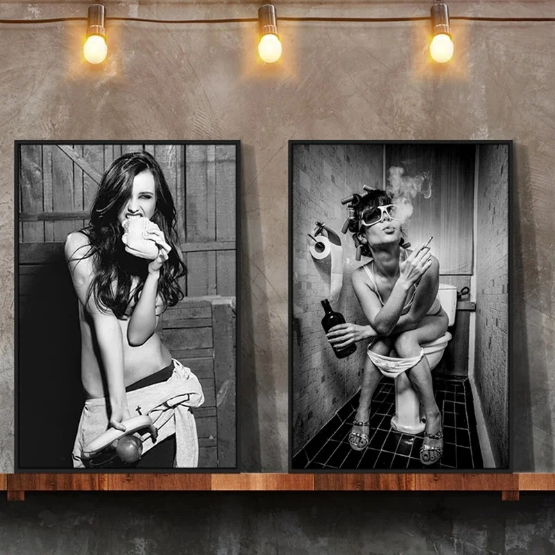 Винтажный постер унитаза с изображением сексуальной женщины и девуш...