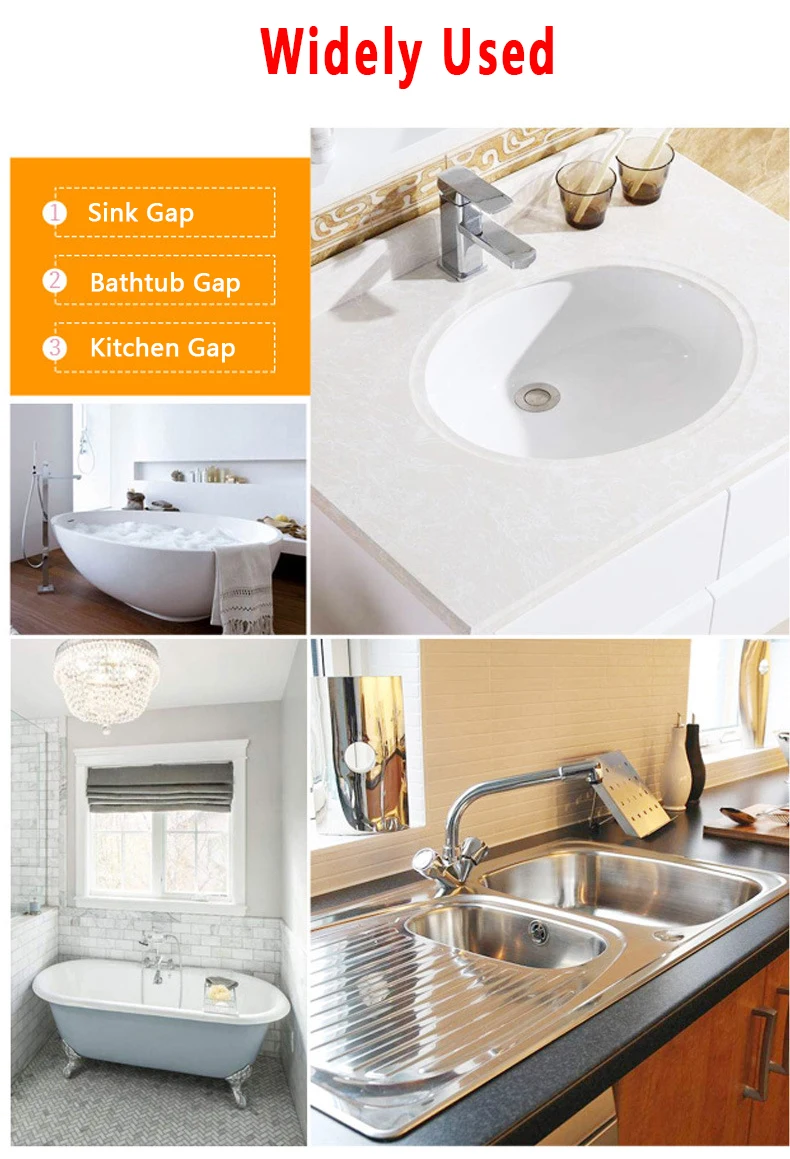 1. Обычно раковина крепится на столе с помощью силикагеля. После длительного использования, водное пятно проникает в силикагель, поэтому силикагель будет выслан и почернен. Эти водонепроницаемые, свободные от плесени Ленточные палочки к шву между газовой плитой и столом, раковиной и столом, сохраняя ваше место отлично и легко чистить