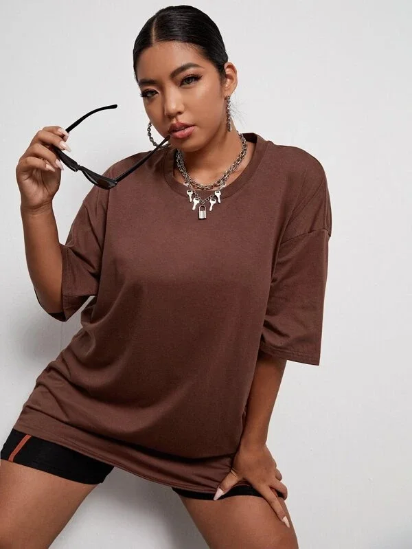 Футболка женская оверсайз с круглым вырезом, простая однотонная Пов...
