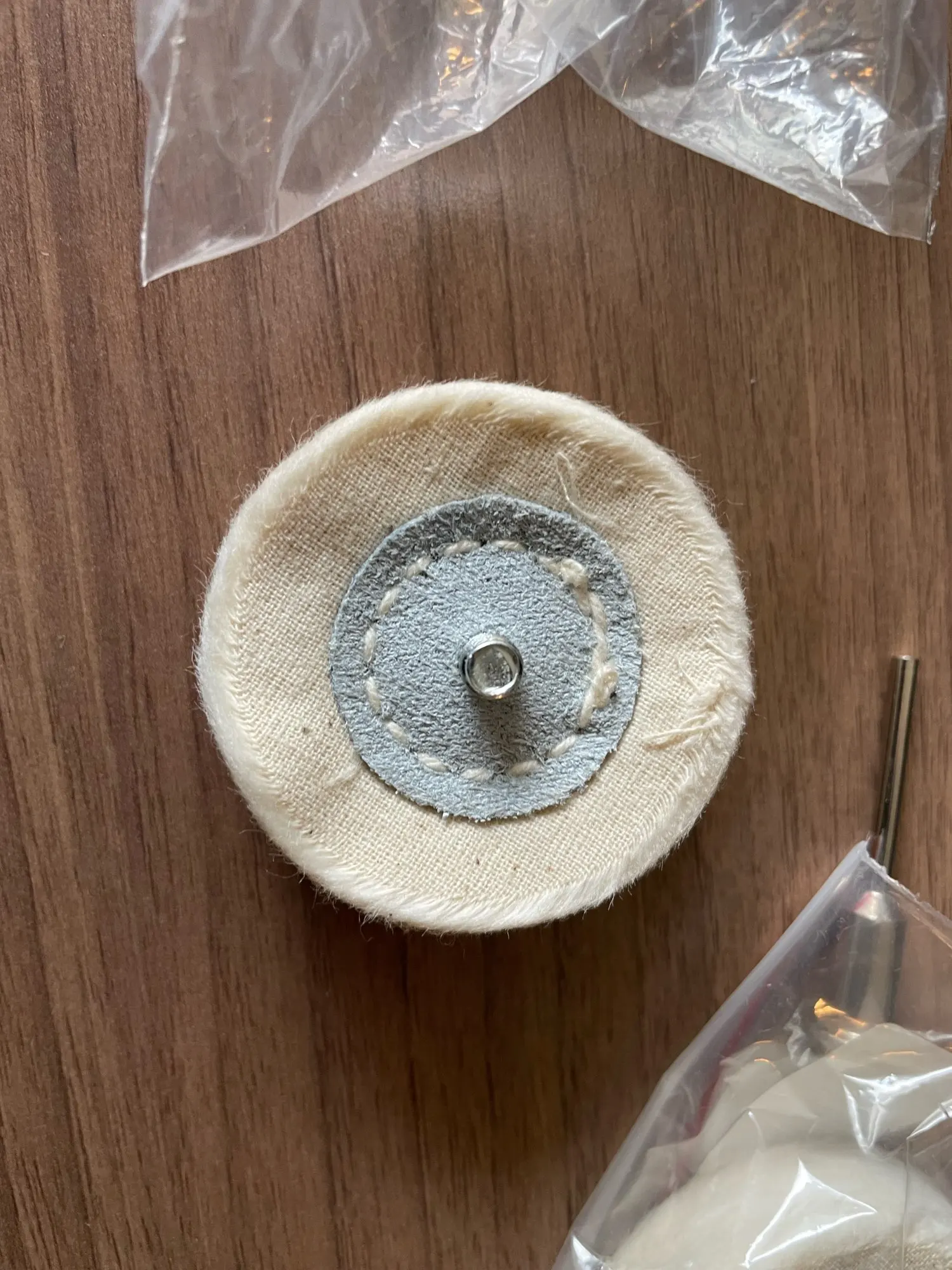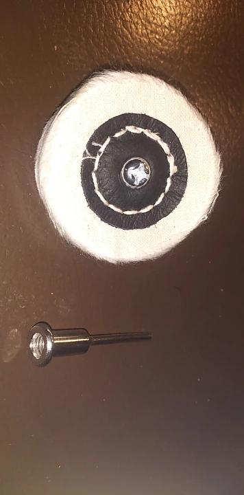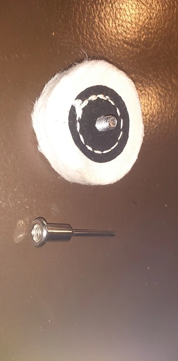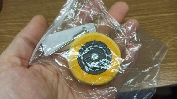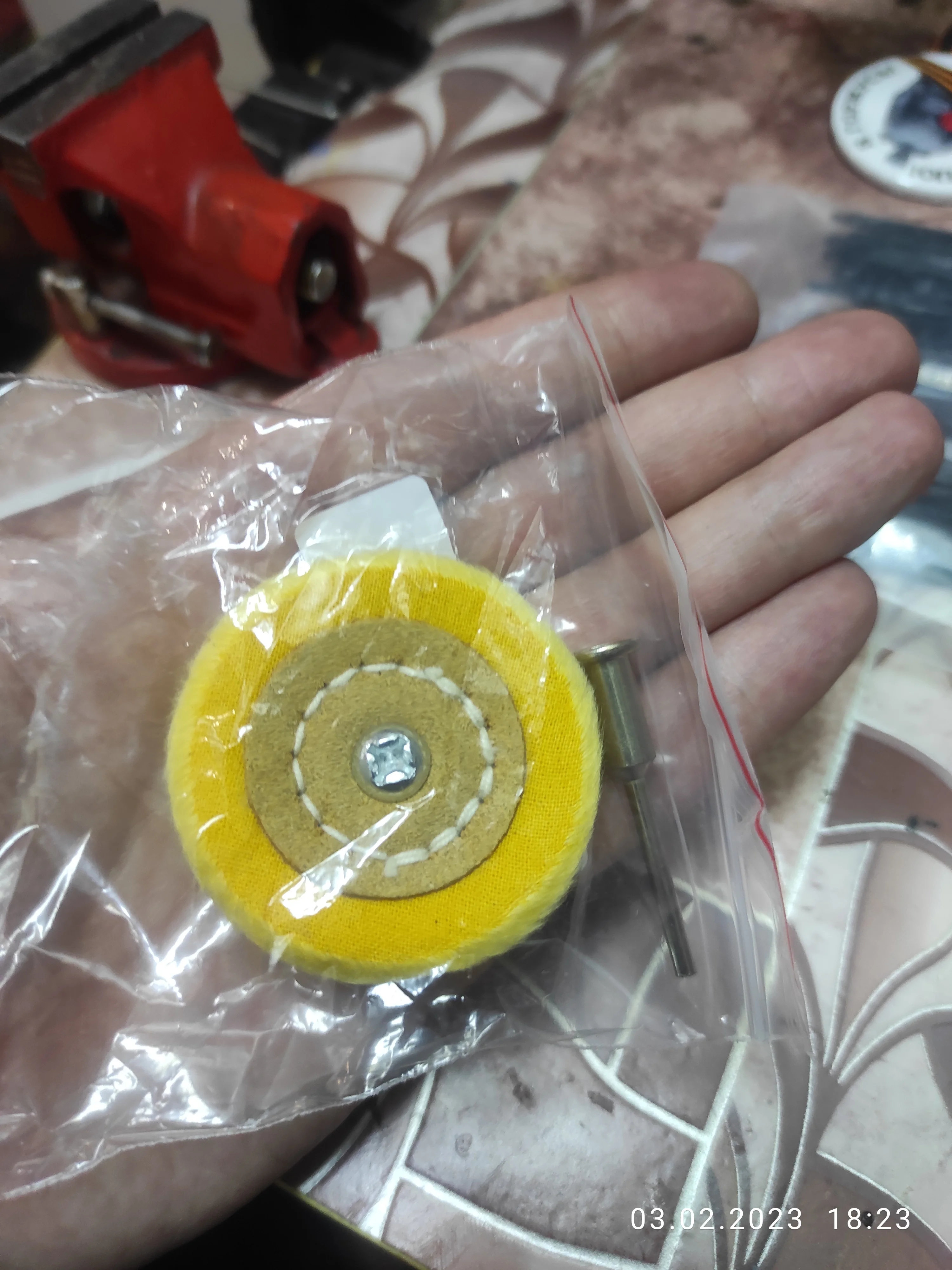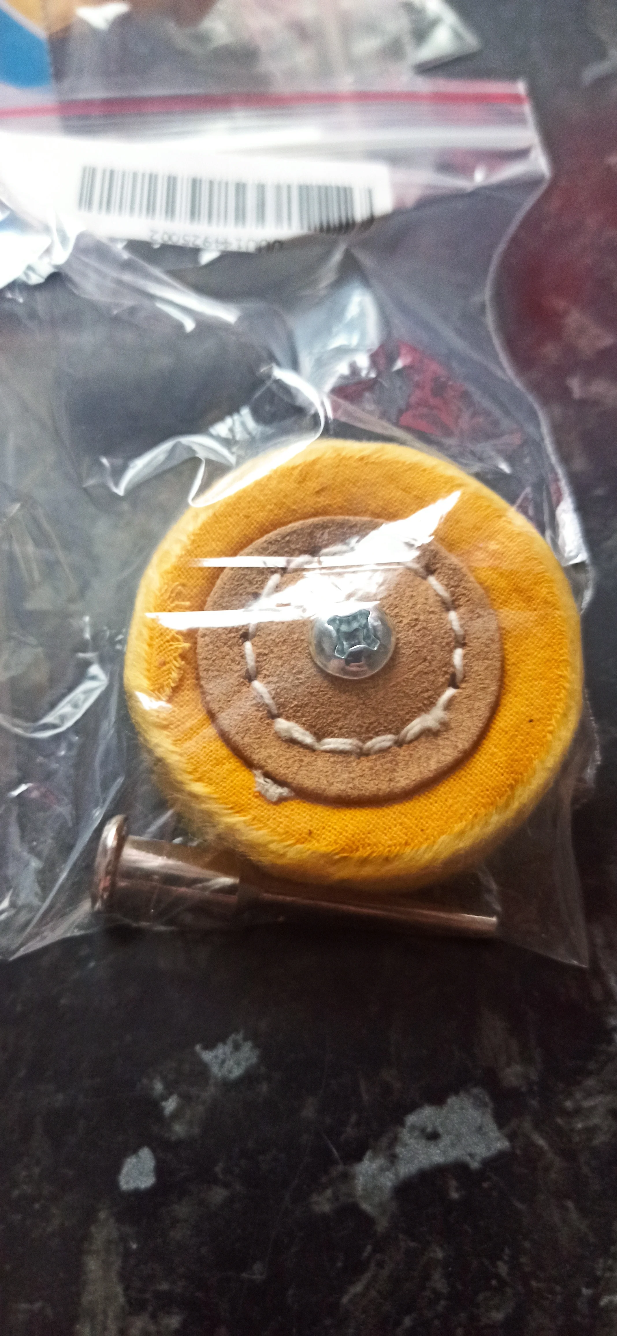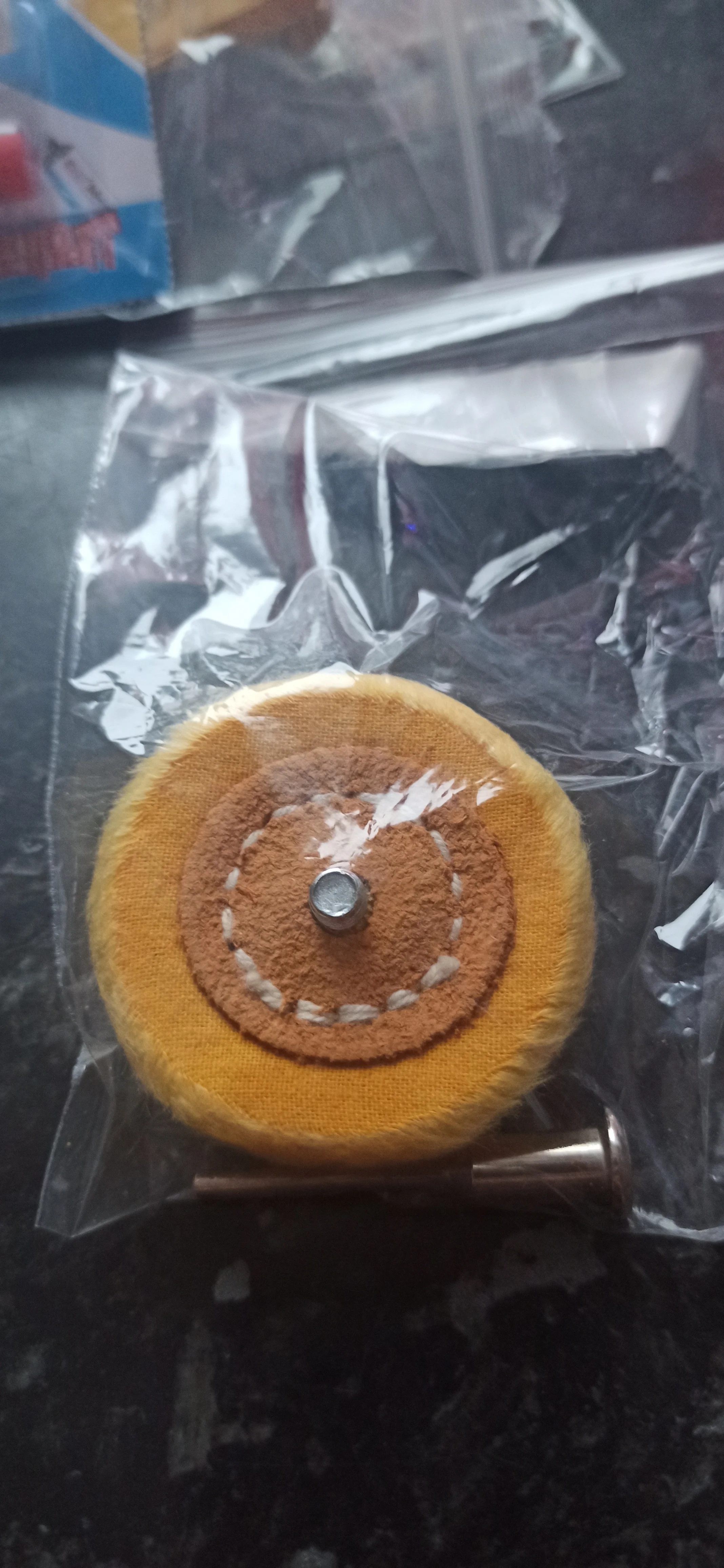 Отличный полировочный круг. Покупал для гриндера и дремеля. На гриндер садится по своей резьбе, на дремель в комплекте имеется переходник. Один недостаток: слишком мягкий, пушится на слои. Еще бы одну прострочку нитками по внешнему периметру. Ширина чуть поуже, чем у другого продавца. Доставка 20 дней в общей посылке.