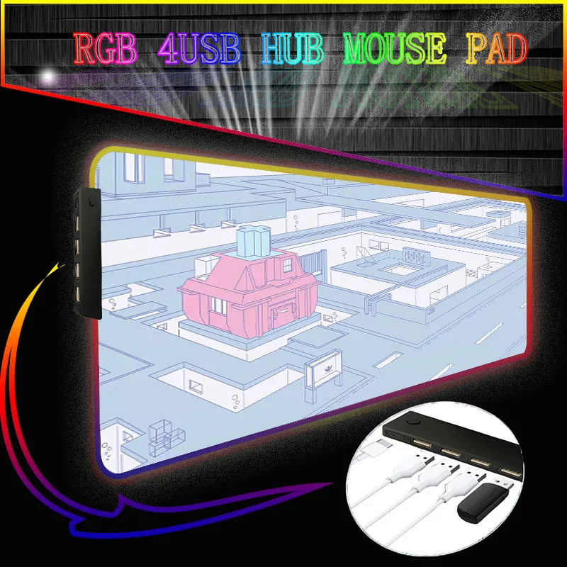 Игровой компьютерный коврик для мыши RGB, 4 порта, большой коврик д...