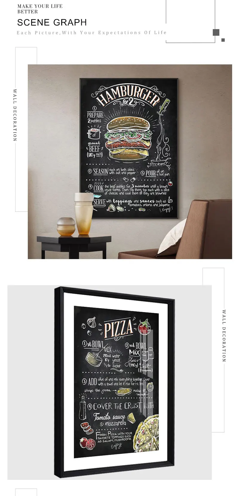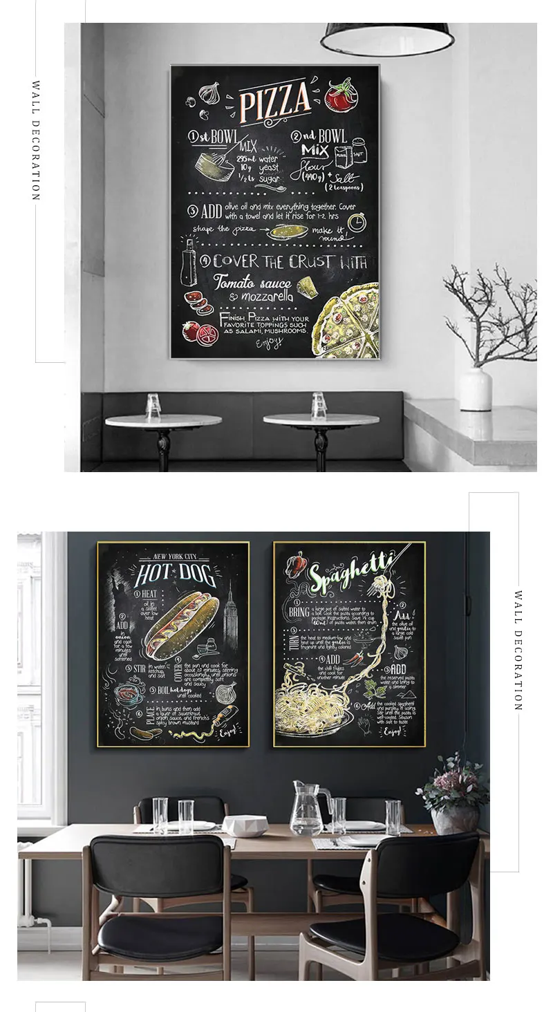 Плакаты на холсте с меню фаст-фуд, настенные картины для украшения стен ресторана, кафе, кухни, гамбургера, пиццы, хот-дога, декоративные картины