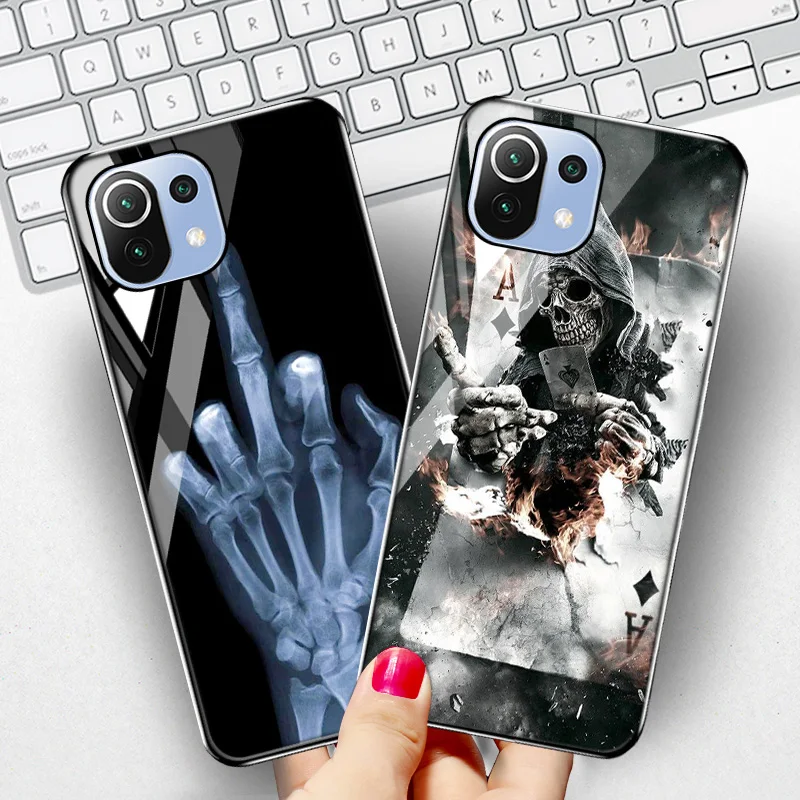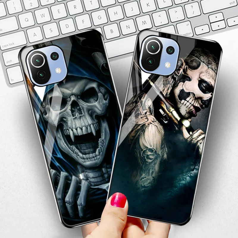 Чехол со скелетом, черепом и стеклом для Xiaomi Mi 11 11T Pro, Чехлы, чехол для Xiaomi Mi 11 Lite 10 T 10 T Pro Poco F3 X3 NFC M3 F1 10S, чехол