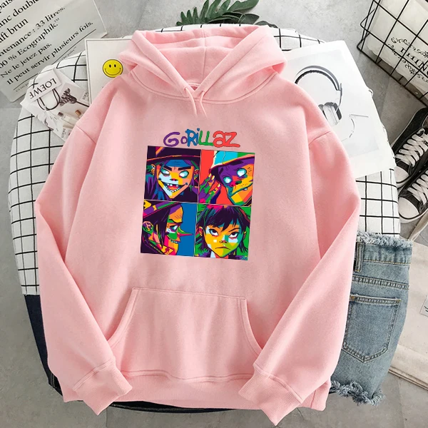 Худи Gorillaz с принтом музыкальной группы, уличная одежда для мужчин и женщин, модные толстовки большого размера с капюшоном в стиле Харадзюку, спортивные костюмы в стиле хип-хоп, одежда