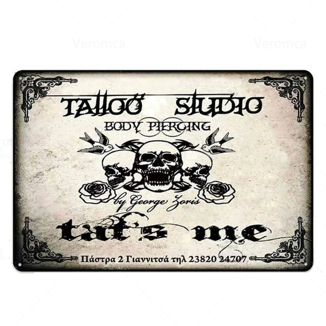 Жестяной винтажный знак для татуировки в фотостудии, привлекательны...
