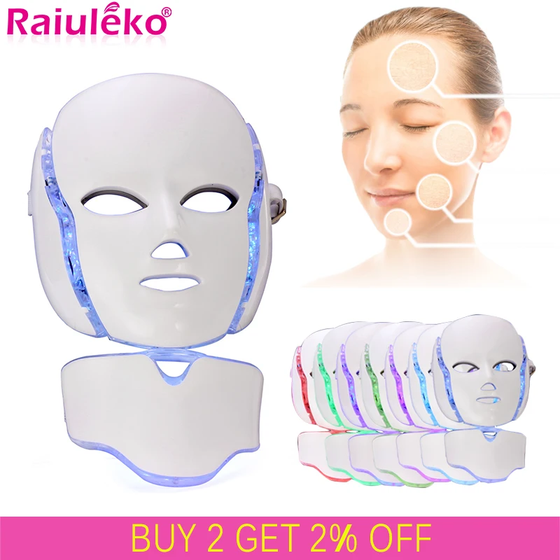 7 цветов Светодиодная маска для лица фотонная терапия против акне у...
