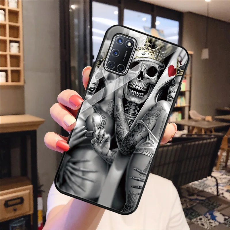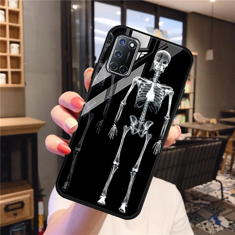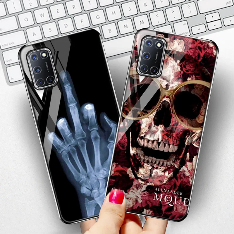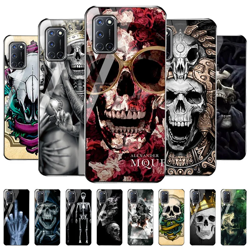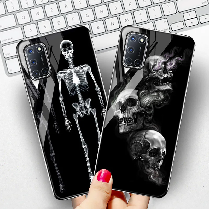 Для OPPO A53S A93 A91 чехол s Скелет Череп закаленное стекло чехол для OPPO A53 A32 A37 A8 A31 A54 A35 A15 A15S A9 2020 крышка бампер