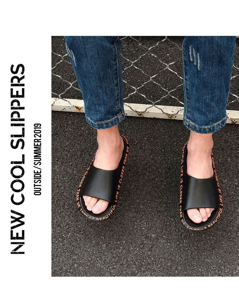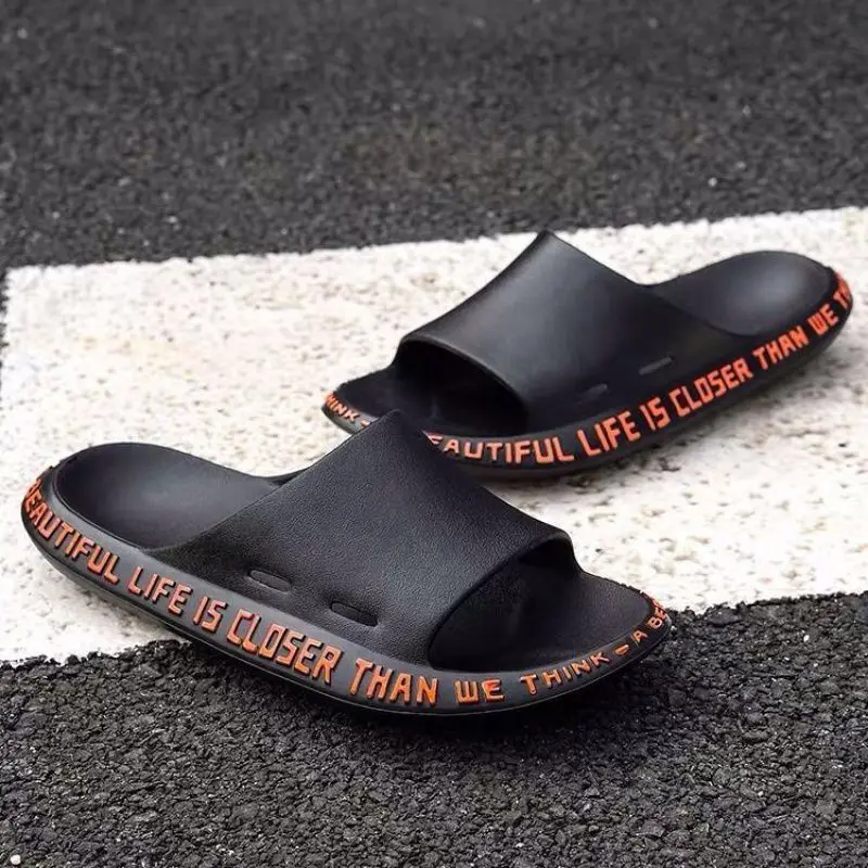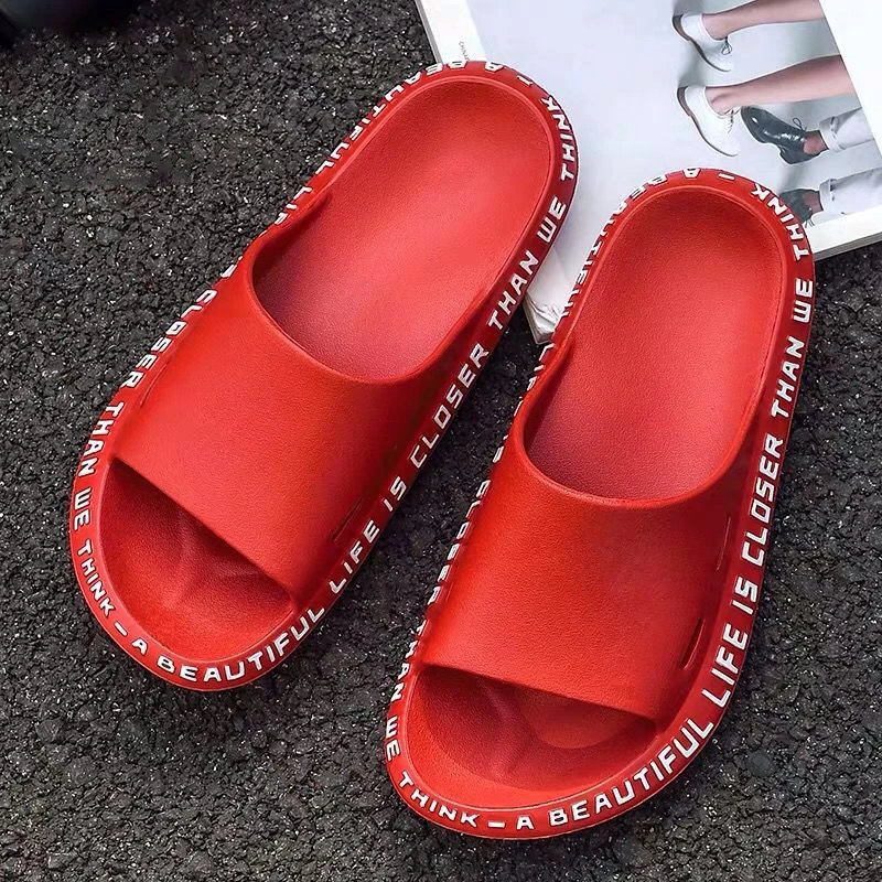 Сандалии пляжные для мужчин и женщин, Нескользящие шлепанцы с надписью, мягкая подошва, для дома и улицы, для ванной, лето 2021