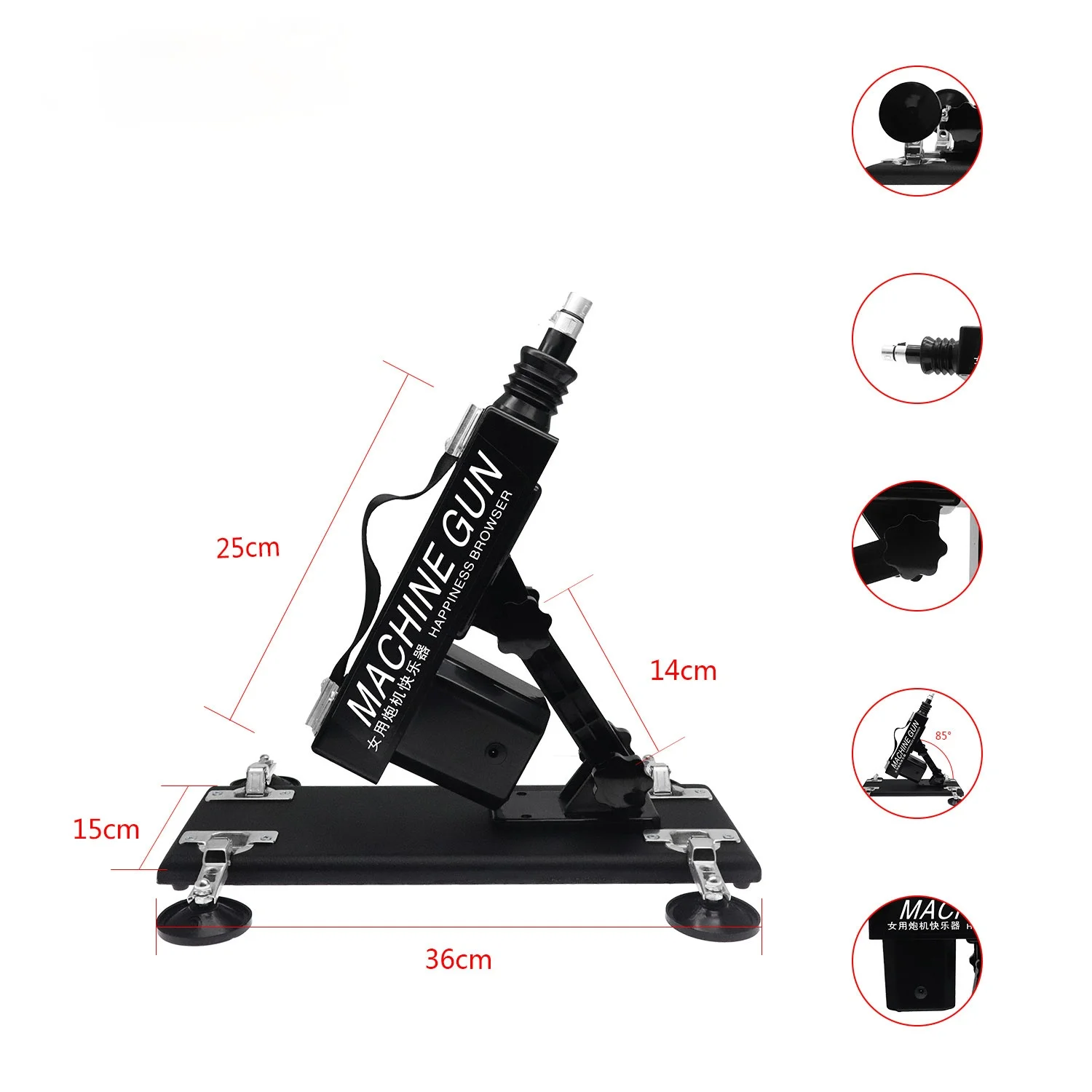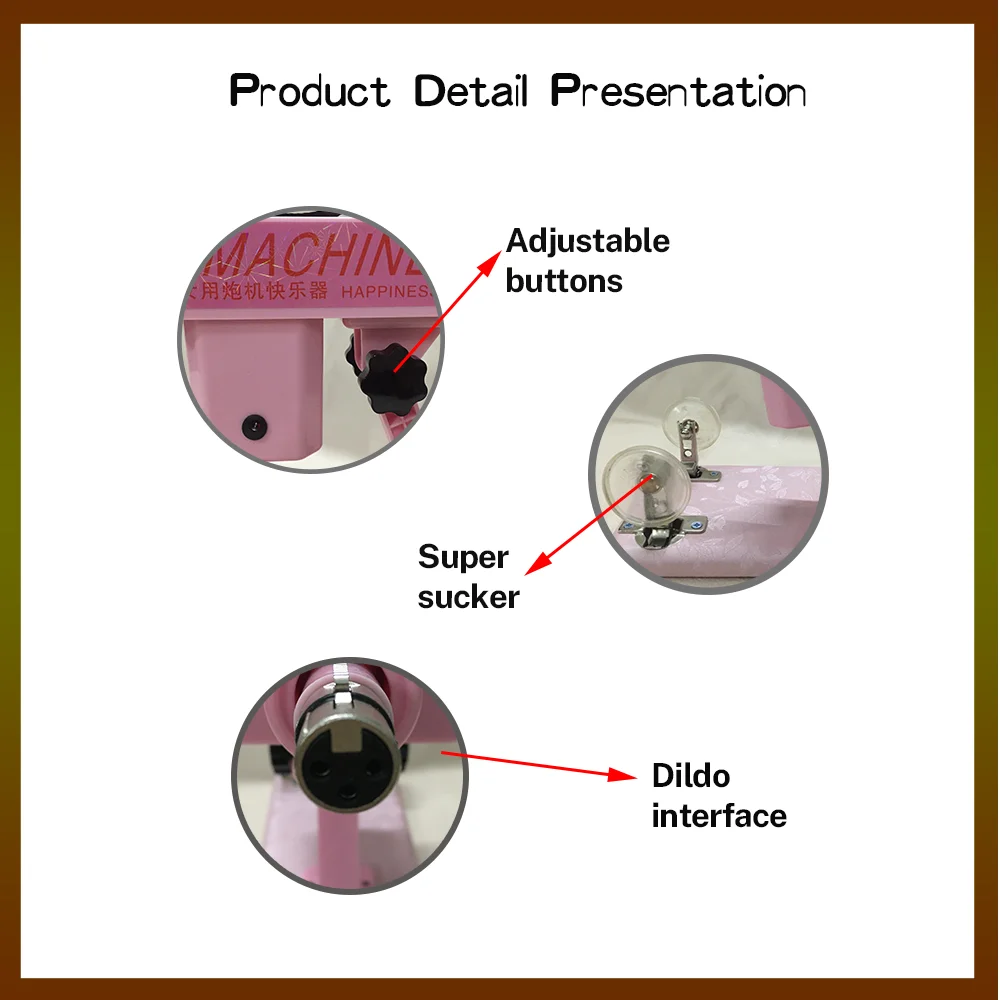 Механическая информация о секс-машине: Выходное напряжение: 12 В/24 В постоянного тока Входное напряжение: от 100 до 240 В (может регулироваться для работы в соответствии с напряжением вашей страны) Скорость поглаживания: от 0 до 420 ударов в минуту Телескопическая расстояние движения: 4,5 см Информация о внешнем виде секс-машины: Цвет: черный, розовый Размер машины: 37 см * 17 см * 15 см (15 дюймов * 6 дюймов * 6 дюймов) Регулируемый угол: от-5 до 80 градусов Вес: около 3 кг Посылка включает в себя (Что в коробке): 1 x секс-машина 1 x источник питания 1 х переходник 1 x Стандартный фаллоимитатор (длина 20 см, диаметр 4 см) Другие вложения соответствуют выбранным вами товарам. Товар показан на выбранном Вами фото, пожалуйста, внимательно ознакомьтесь с ним Шаги использования 1. Нажмите все 5 для крепления машины для гладких поверхностей 2. Установите одно из прилагаемых вложений на 1 3. Поверните 2 для регулировки положения ангела двигателя 4. Подключите питание, включите переключатель ручки 5. Поверните 4 для регулировки скорости перекачки и подруливания