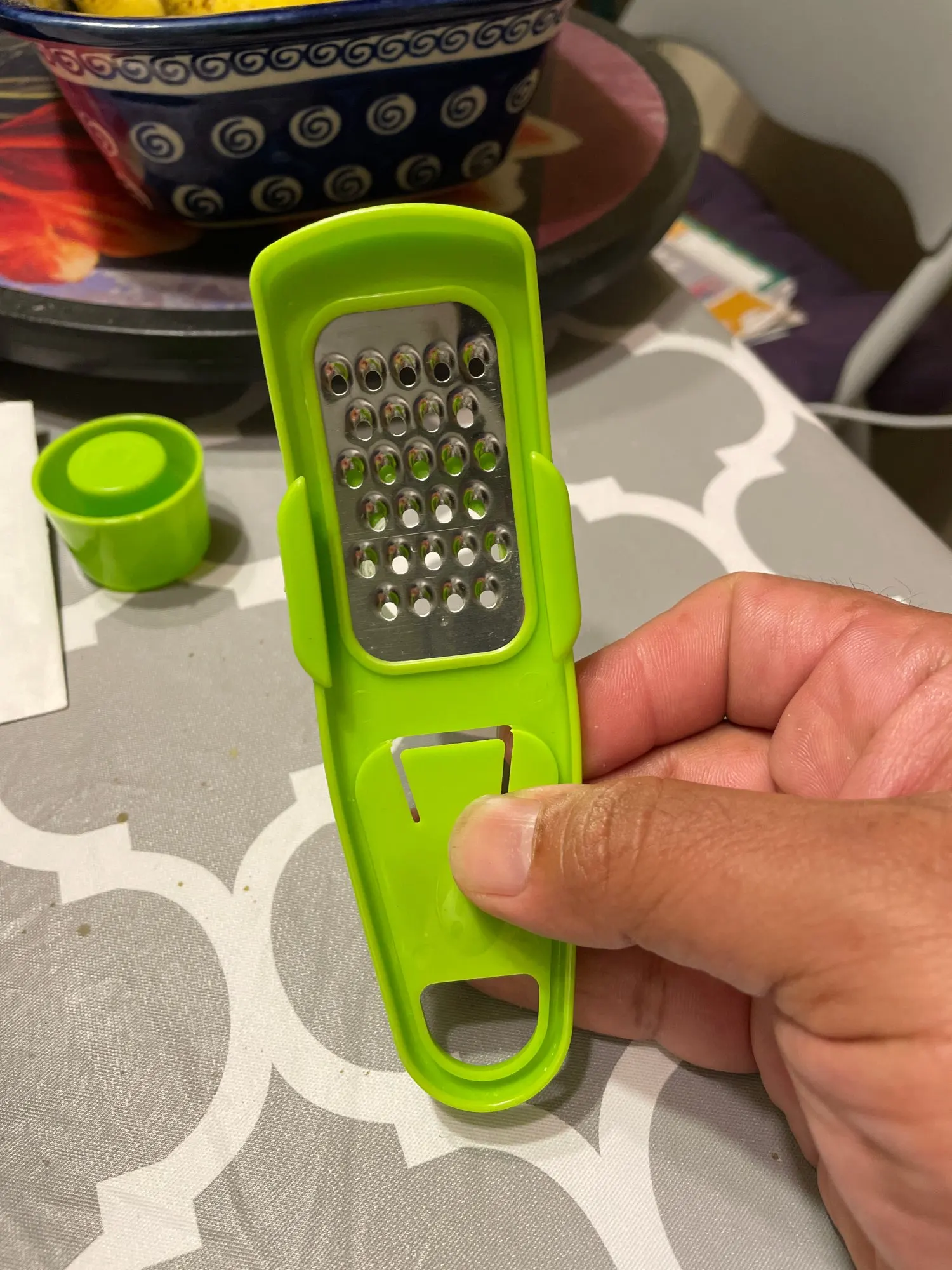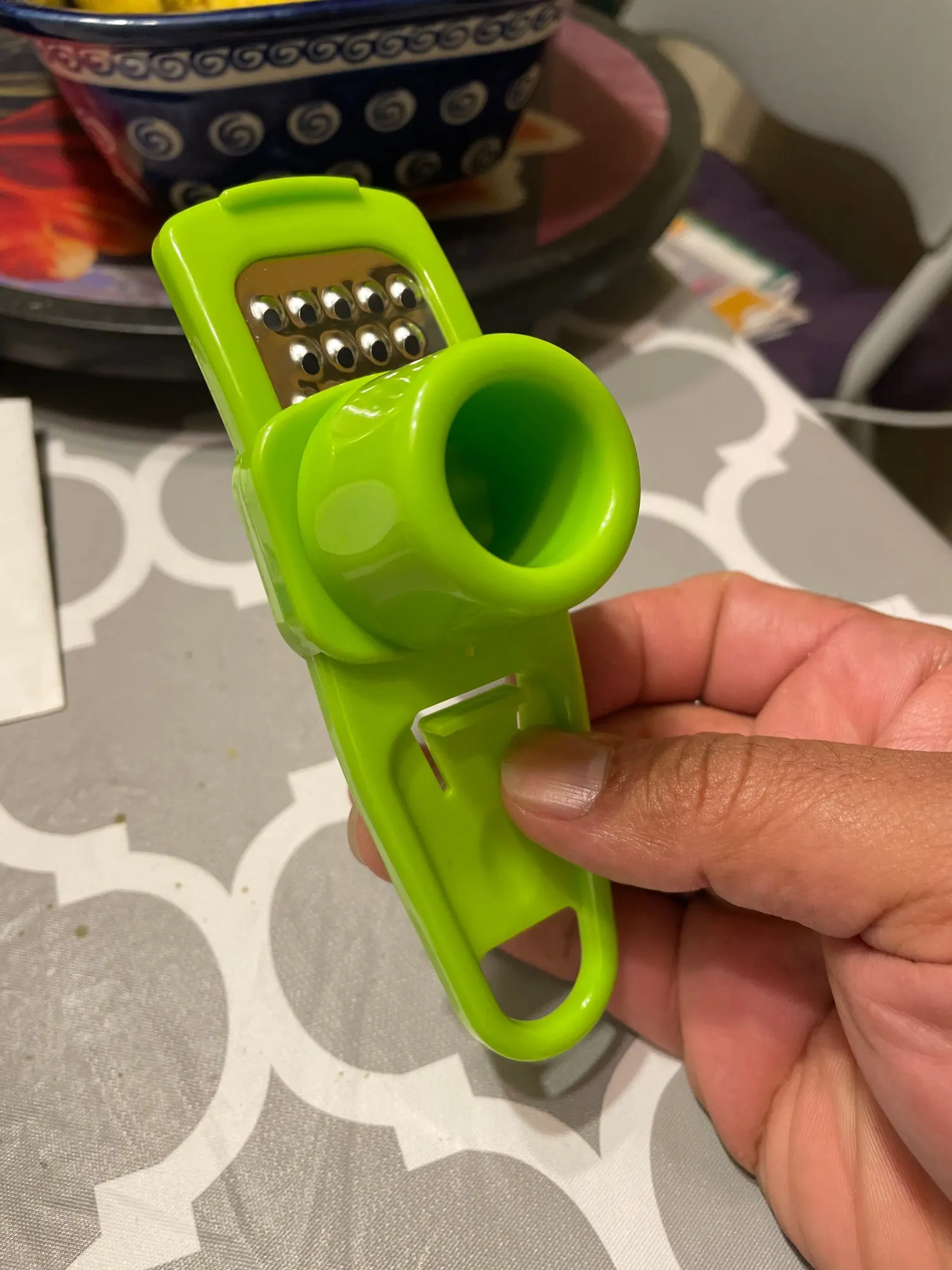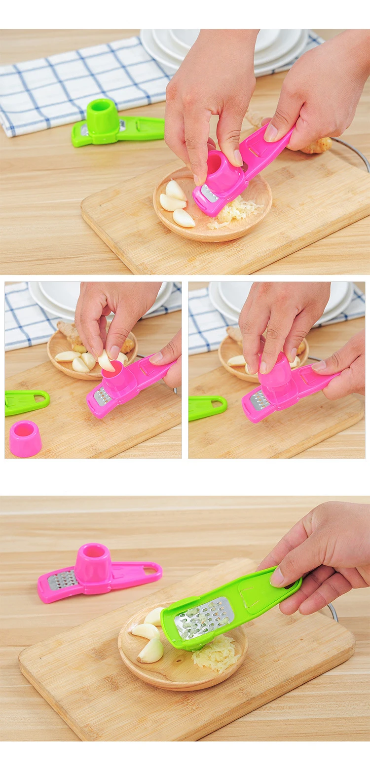 Замечательный измельчитель чеснока, очень удобный в использовании. Нужно положить дольку чеснока внутрь, затем прикрыть его специальной пластиковой крышкой и тереть до полного измельчения. При этом, пальцы рук надежно защищены. Отличная конструкция! Великолепное изобретение для всех, кто любит готовить вкусные блюда с чесноком. Также, с помощью этого приспособления можно измельчить имбирь и любые другие ингредиенты. Горячо рекомендую данный товар и магазин DEOGOL STORE всем покупателям АлиЭкспресс. ⭐⭐⭐⭐⭐