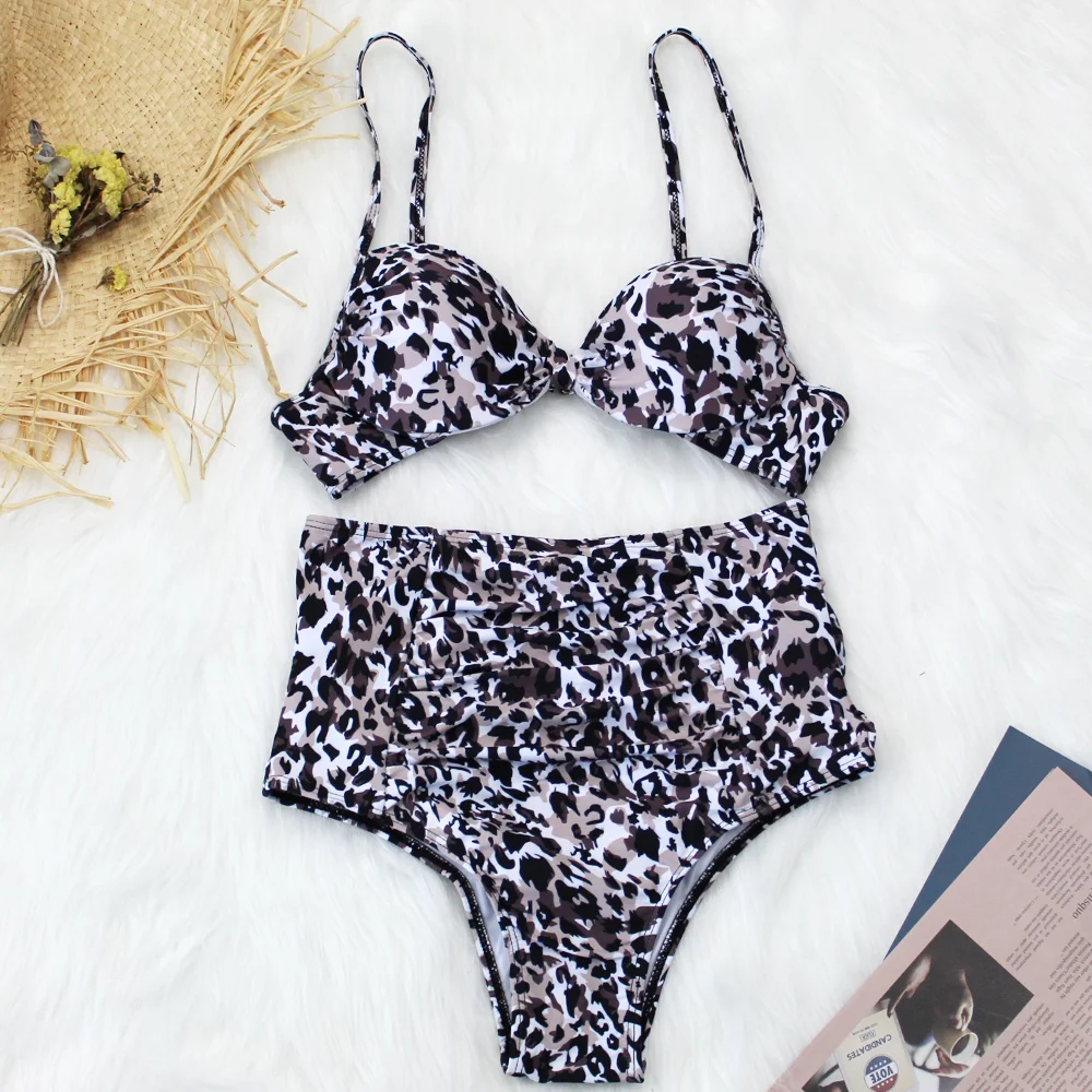 Бразильские комплекты бикини с высокой талией, леопардовые купальни...