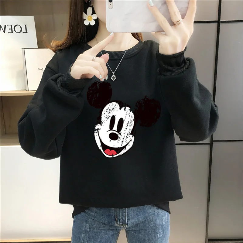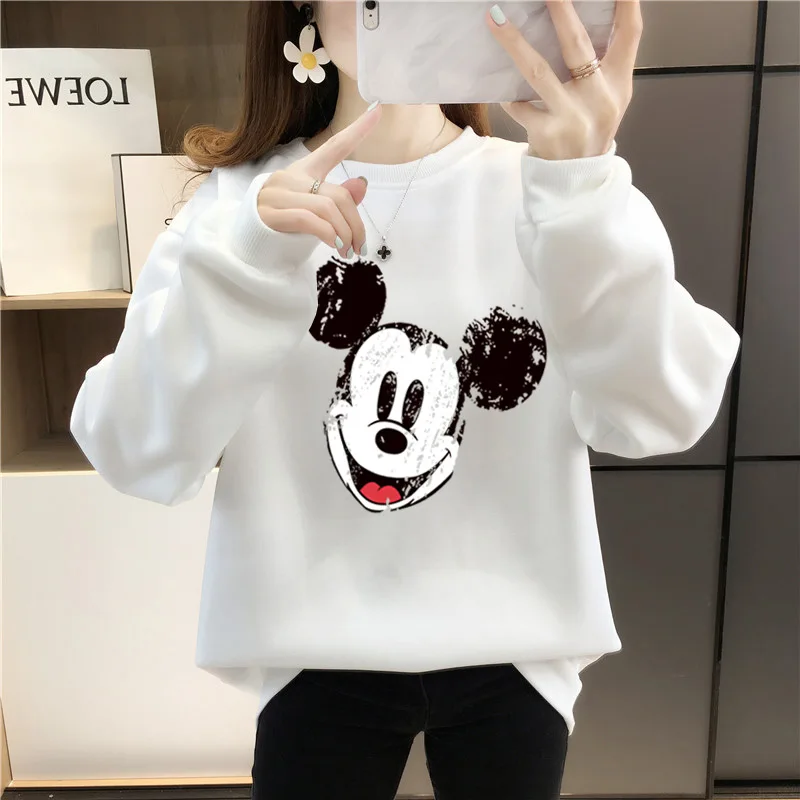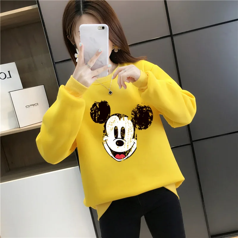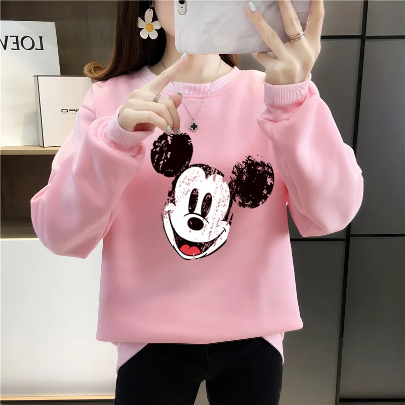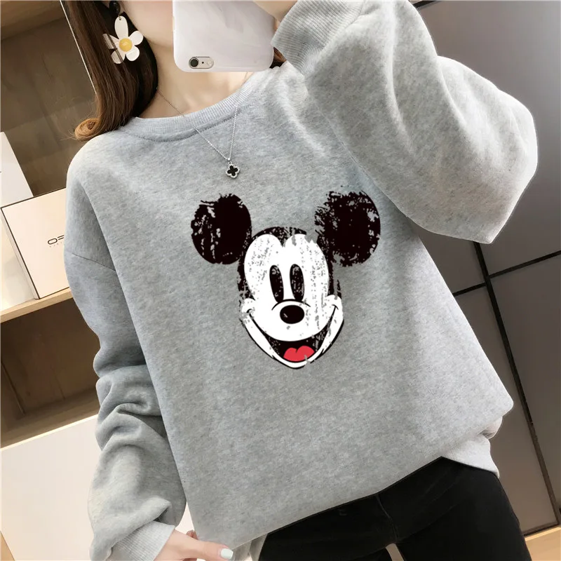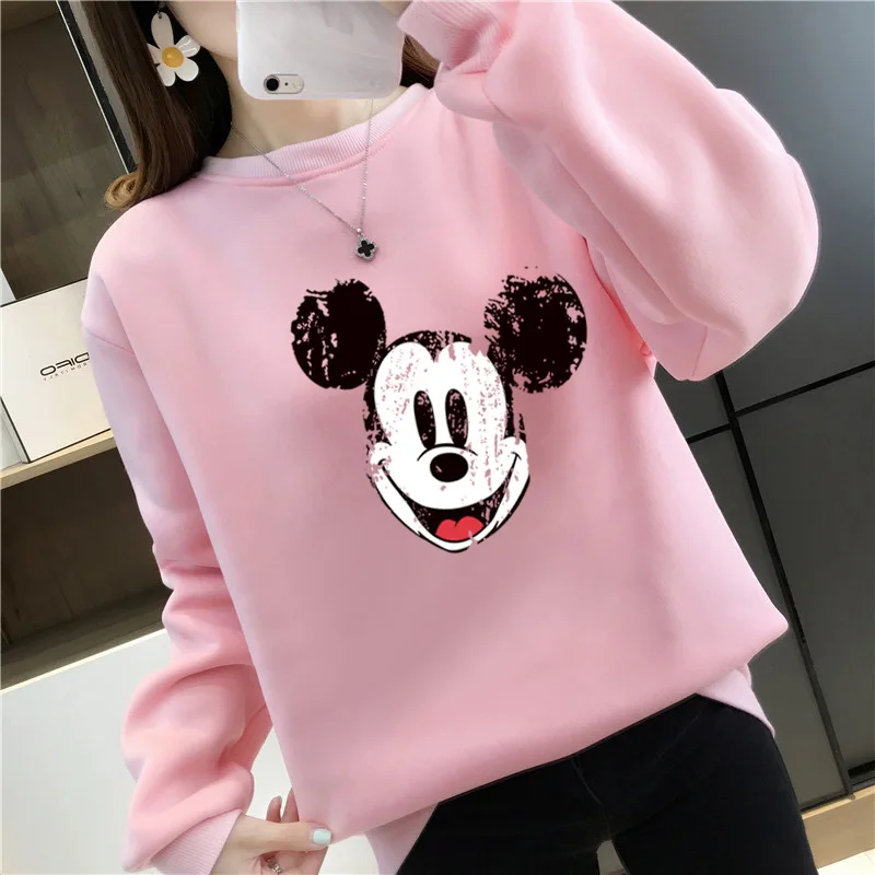 Толстовка Женская, Осень-зима 2021, толстая, теплая, в стиле мультфильма Disney с изображением Микки и полерона, в стиле 90-х, корейский стиль, Y2K