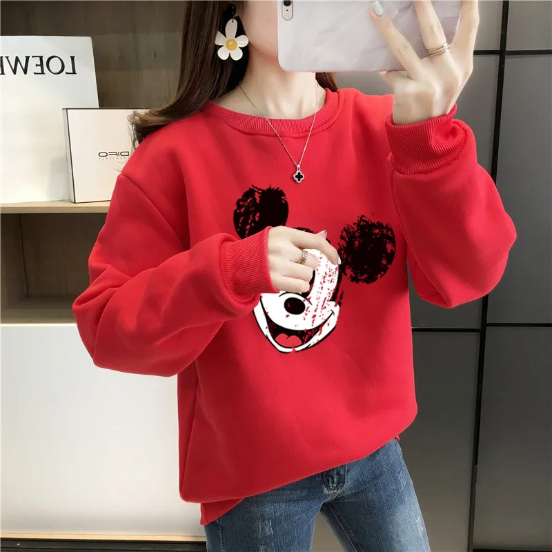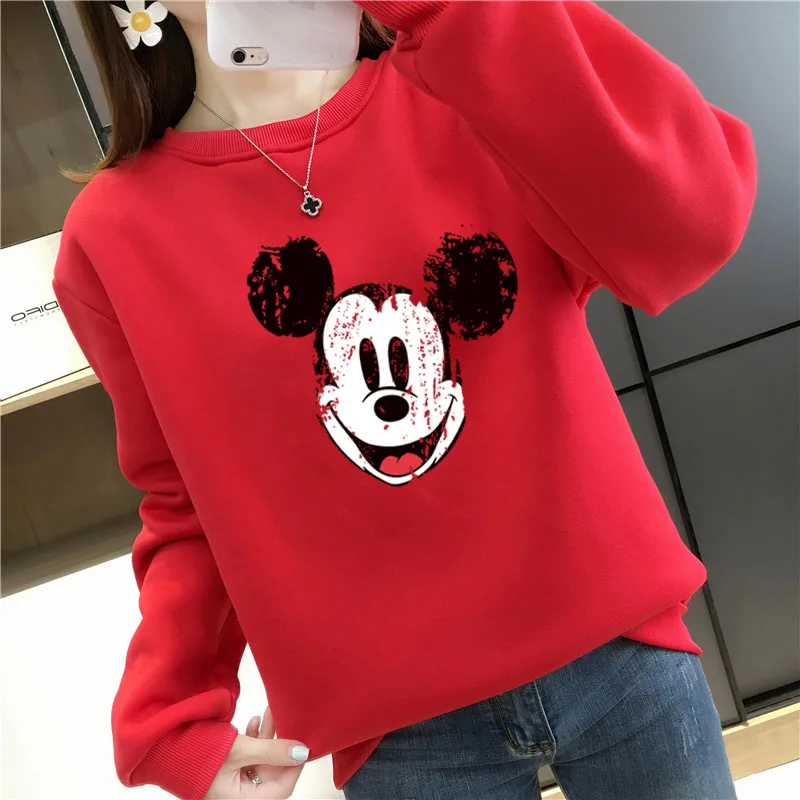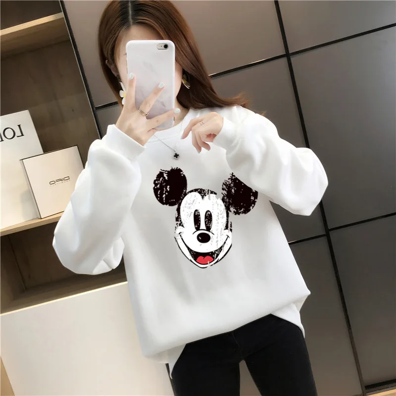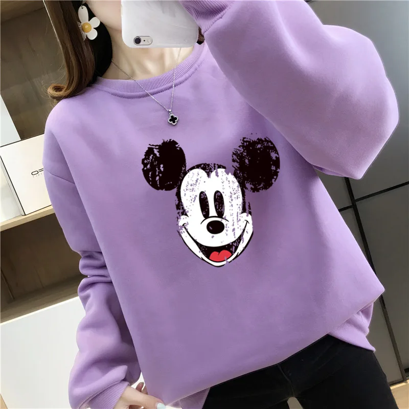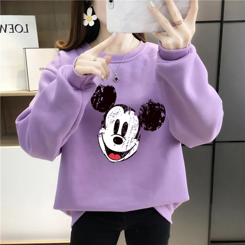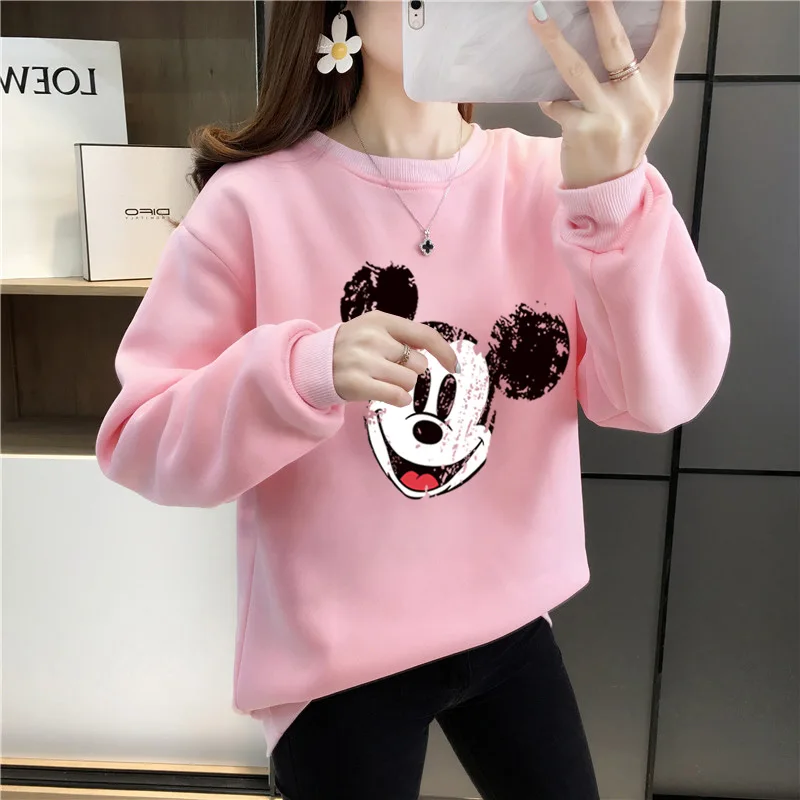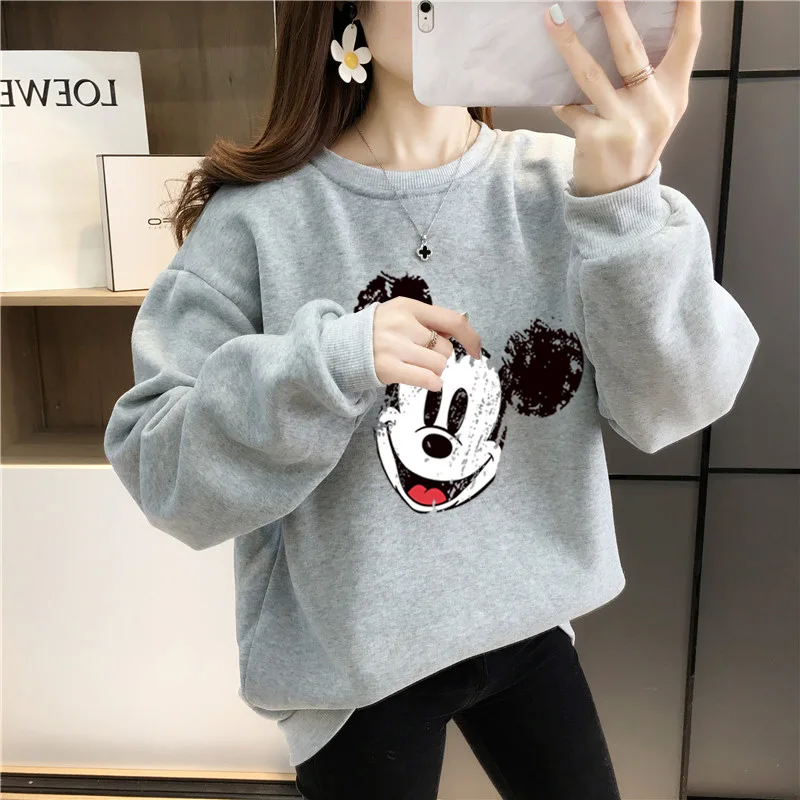 Толстовка Женская, Осень-зима 2021, толстая, теплая, в стиле мультфильма Disney с изображением Микки и полерона, в стиле 90-х, корейский стиль, Y2K