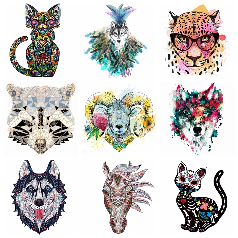 Термоклейкие нашивки с животными для одежды, Переводные термонаклейки для одежды с волкомКроликом, овечкой, моющиеся Аппликации, Декор