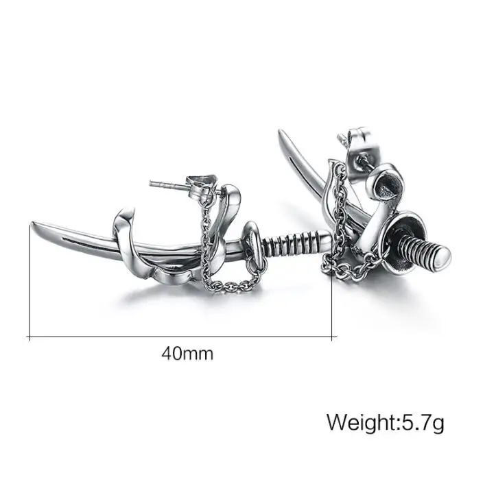 Обратите внимание на магазинНа 100% абсолютно новый качества и высокое качествоМатериал: высококачественный сплавКоличество: одна параЦвет: серебристыйСтиль: креативный, ретро, модный, панк, рок, хип-хопРисунок формы: мечПодходит для толпы: МужскойУпаковка товара: 1 пара сережек