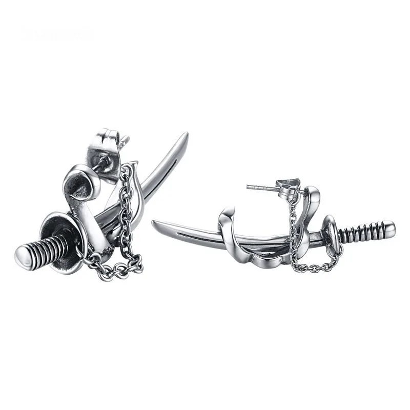 Модные креативные дизайнерские мужские ретро высококачественные металлические серьги в стиле панк самурайский меч ювелирные изделия в подарок