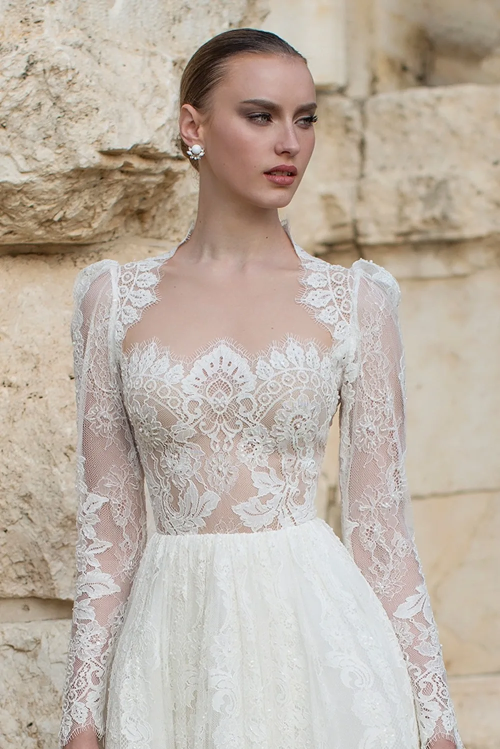 Кружевное свадебное платье с разрезом, 2020, длинные рукава, а-силу...